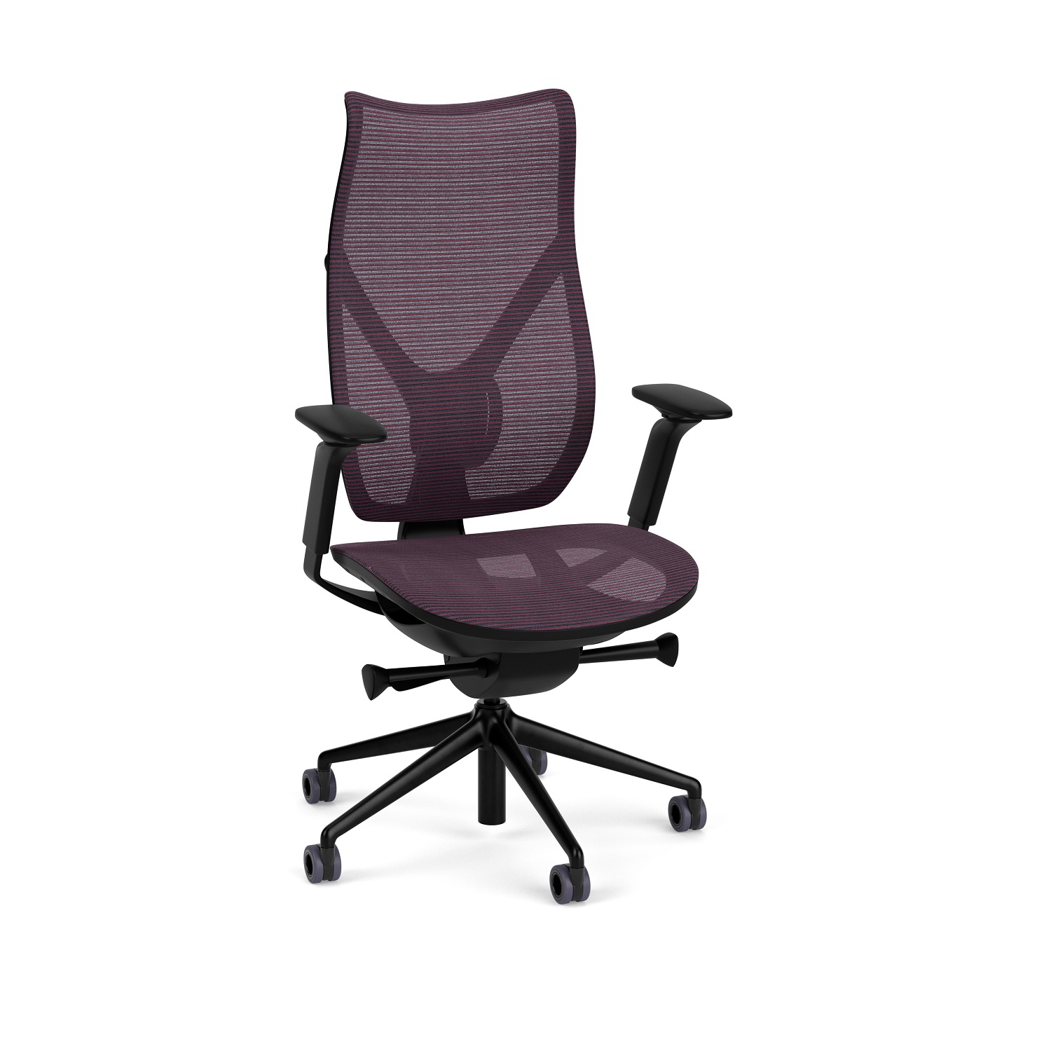 The Onda High-Back Task Chair represents perfect harmony between form and function. Onda, italian for "wave," is Via Seating's first all mesh chair, with an elegant form designed to maximize your comfort and productivity. This model features quick adjust synchro control, which offers seat height adjustment, back tension adjustment, and a single back tilt lock adjustment with five positions. Onda has adjustable seat depth adjustment, as well as adjustable arms and locking safety casters to ensure a comfortable, supported sitting position. Shown with a high back black high profile frame and red mesh seat and back. Aesthetically pleasing and ergonomically functional, this office chair was designed with you in mind.