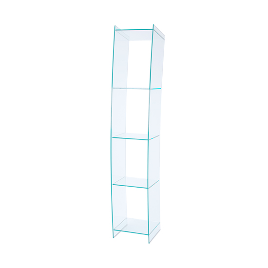 [0] => Open Wind display cabinet in clear glass with steel accents. Designed by Studio 28.