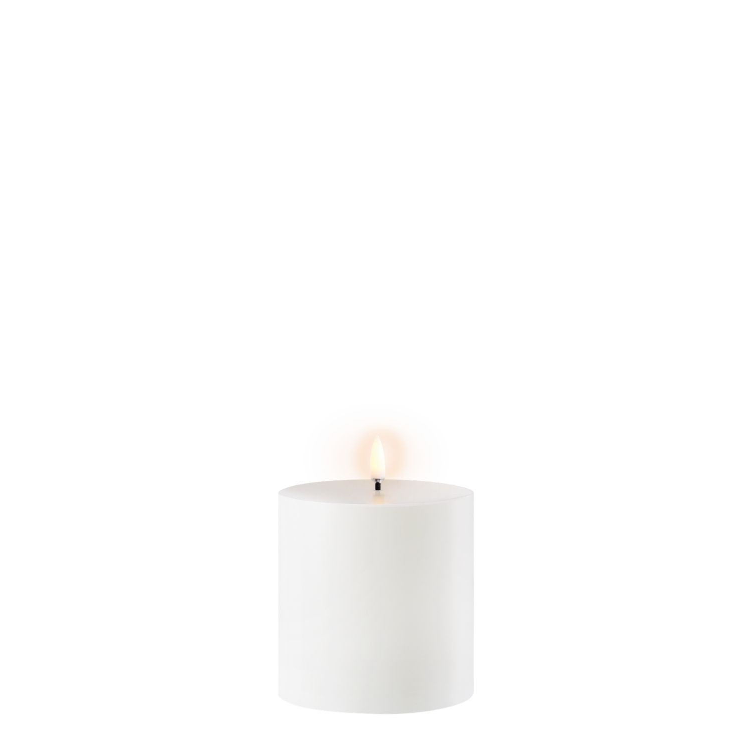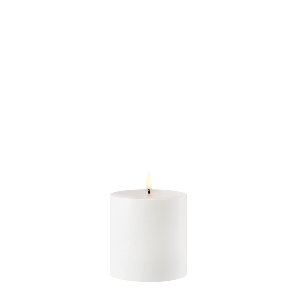 This outdoor LED pillar candle brings you warm, ambient light with a clean, smooth look. Featuring a white finish that gives it a crisp, modern feel, this candle uses Uyuni's Signature Flicker™ LED to create a soothing, flame-free ambience filled with a homey charm. Engineered to be splashproof, wind-resistant, and UV-protected, this candle is perfect for gardens, patios, poolside, and more. Mix and match with other Uyuni outdoor pillar sizes for a layered display.