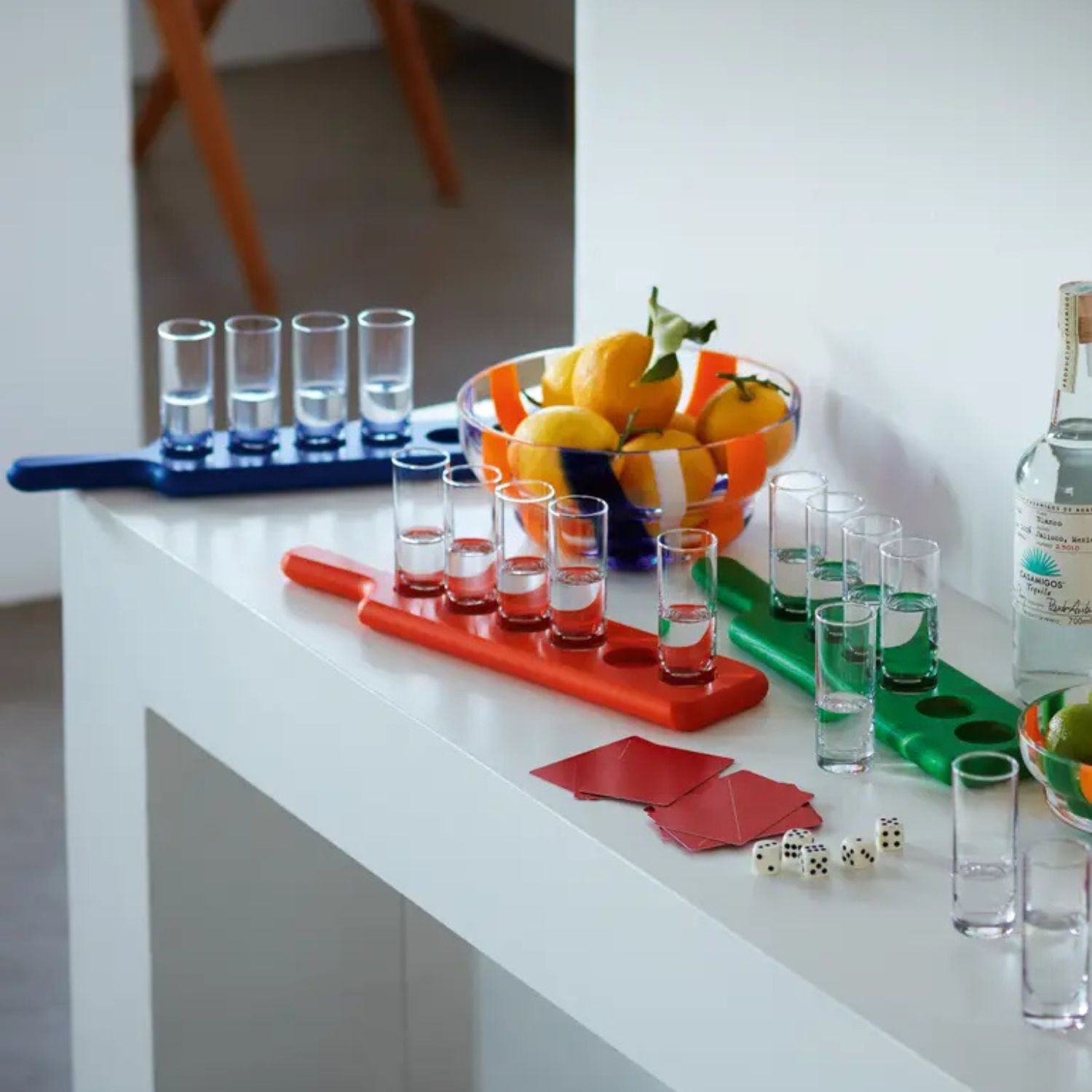 Inspired by serving pieces from Tirolean mountain bars, the Paddle Pop Shot Set includes six clear shot glasses that nestle securely within a wooden paddle painted in vibrant sunset orange. Designed with care by LSA International, the paddle is made with FSC-certified ash wood and organic paint, while the dishwasher-safe glasses are created with advanced technology for pristine clarity. Perfect for serving your favorite spirits, the Paddle Pop Shot Set will liven up any gathering.