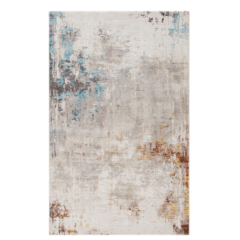 [0] => The Palomino Canvas Rug features shades of grey accented by cool tones of blue and warm tones of reddish-brown and yellow, with a medium-height fine pile. Woven in Belgium from a blend of 60% heat-set polypropylene and 40% polyester, the Palomino Canvas Rug is durable enough for any area of the home. Place it in your living room, entryway, or bedroom to warm up your space and create a cozy, relaxed mood.