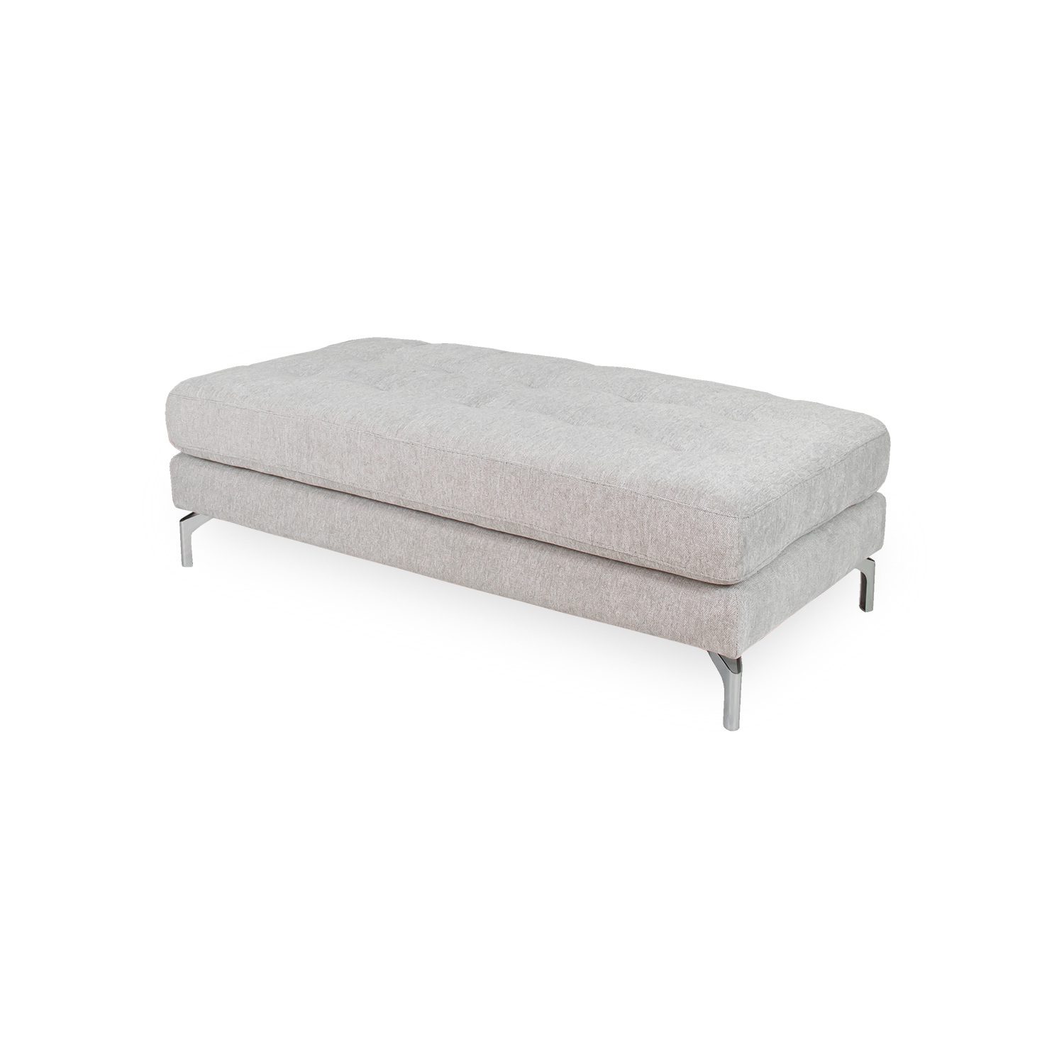 The Parker Ottoman is elegant and sleek, with silver Lillie fabric upholstery and steel metal legs that match the Parker Sectional. Its broad, rectangular shape has plenty of space to be used as a footstool, extra seating, and more, and the top features light tufting for a subtle modern touch.