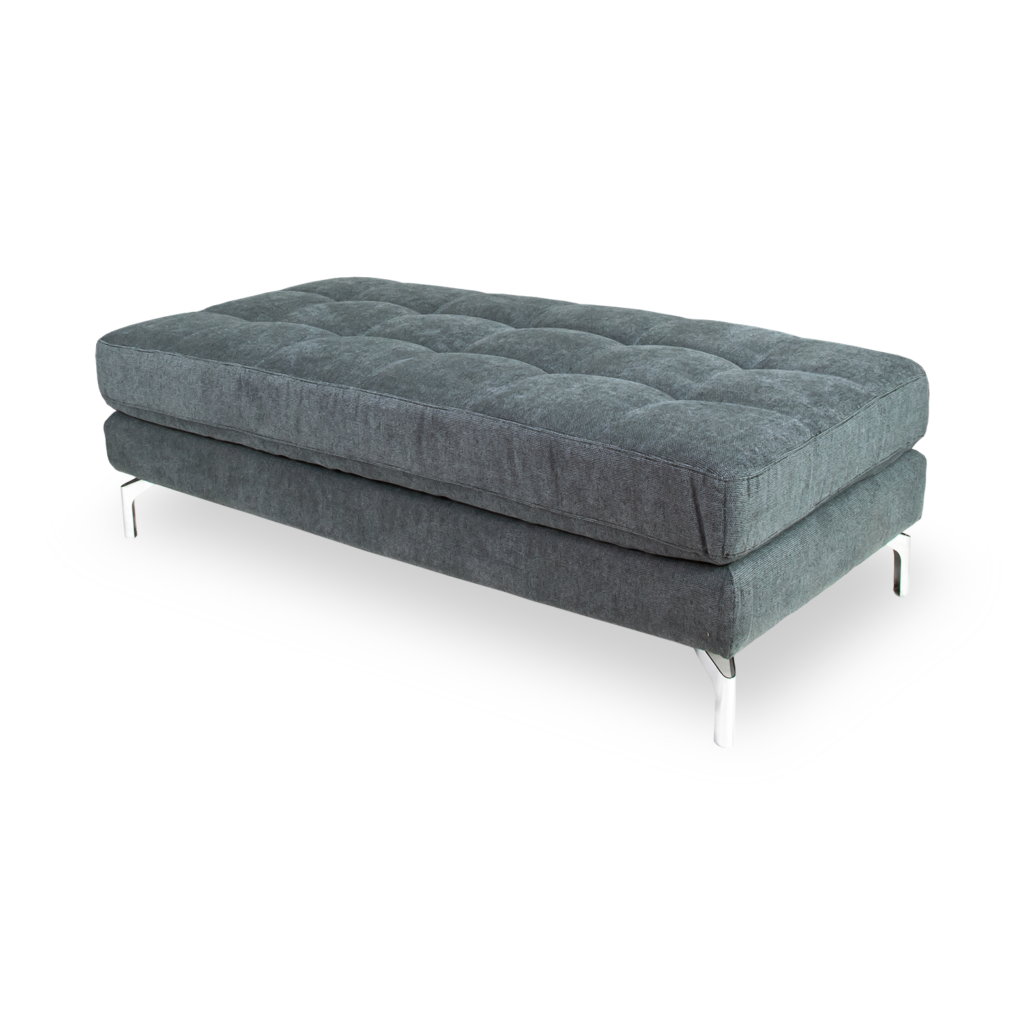 [0] => The Parker Ottoman is elegant and sleek, with charcoal Lillie fabric upholstery and steel metal legs that match the Parker Sectional. Its broad, rectangular shape has plenty of space to be used as a footstool, extra seating, and more, and the top features light tufting for a subtle modern touch.
