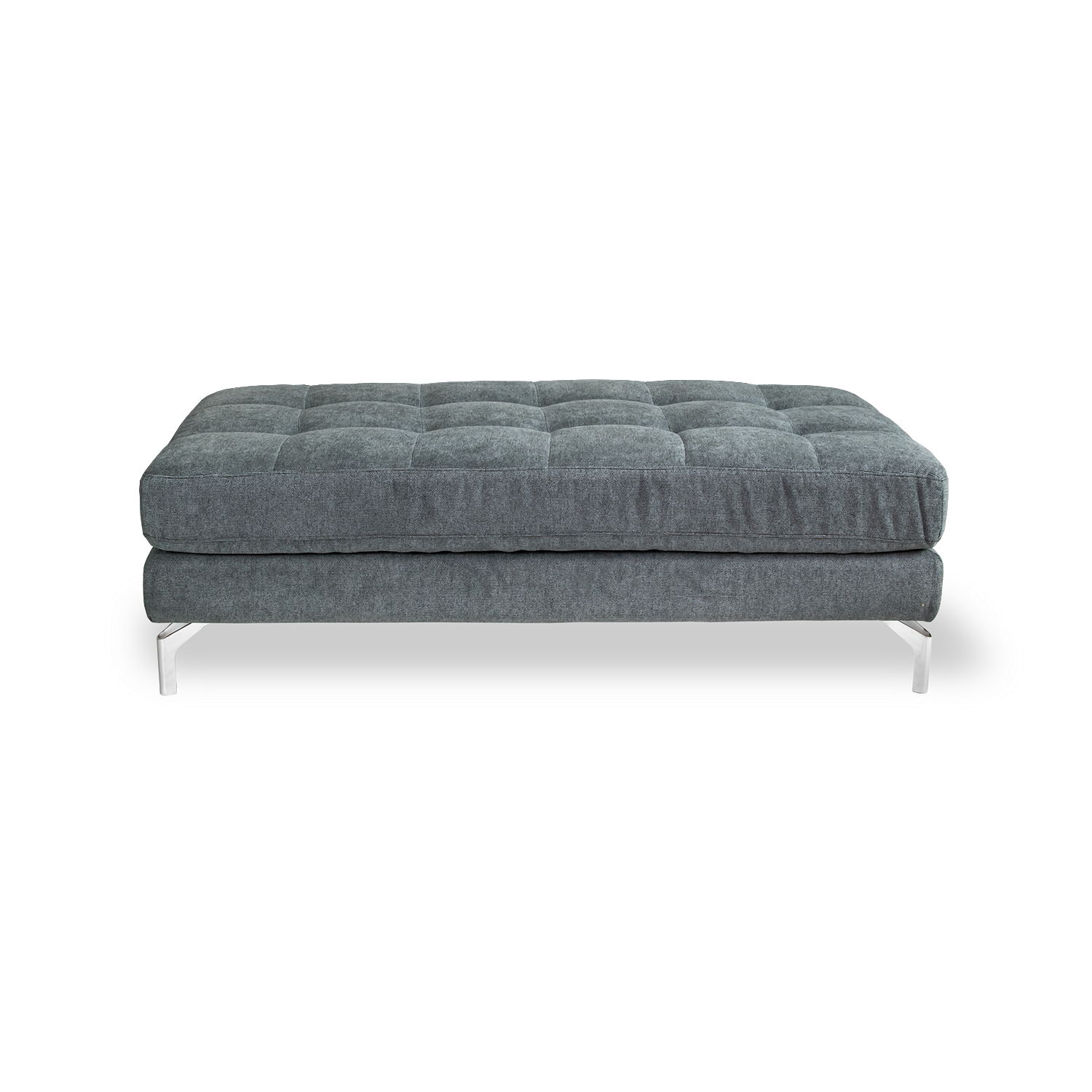 The Parker Ottoman is elegant and sleek, with charcoal Lillie fabric upholstery and steel metal legs that match the Parker Sectional. Its broad, rectangular shape has plenty of space to be used as a footstool, extra seating, and more, and the top features light tufting for a subtle modern touch.