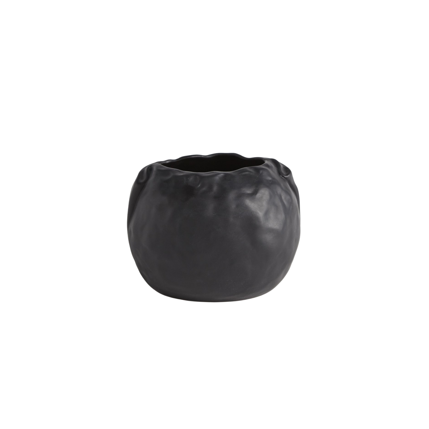 A reproduction of a vase crafted in Italy by two brothers, the Petale Vase has an organic pinched design with folded-over edges that are a testament to its handmade origins. Made of ceramic with a matte black finish, this vase's small size makes it perfect for a delicate yet modern bouquet.