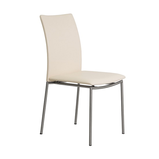 [0] => The Pia Dining Chair by Skovby of Denmark combines soft semi-aniline ice off-white leather with a brushed steel frame to create a chair that is both comfortable and stylishly contemporary. The wide seat and curved seat back provide support and comfort, and the luxurious off-white leather contrasts nicely with the gleaming silver legs. With its clean, minimalist design, Pia will complement any living space.