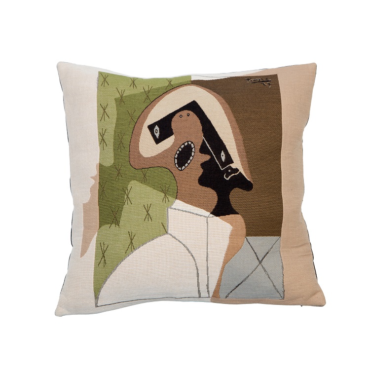 Bring art into your home with the Picasso - Harlequin (1927) Pillow, rendered in vivid colors and textures and stuffed with duck down. What makes the pillow truly "art" is its jacquard style woven design that brings Picasso's work into your home, directly imported from France. The perfect gift or addition for an art enthusiast or anyone who loves a timeless masterpiece.