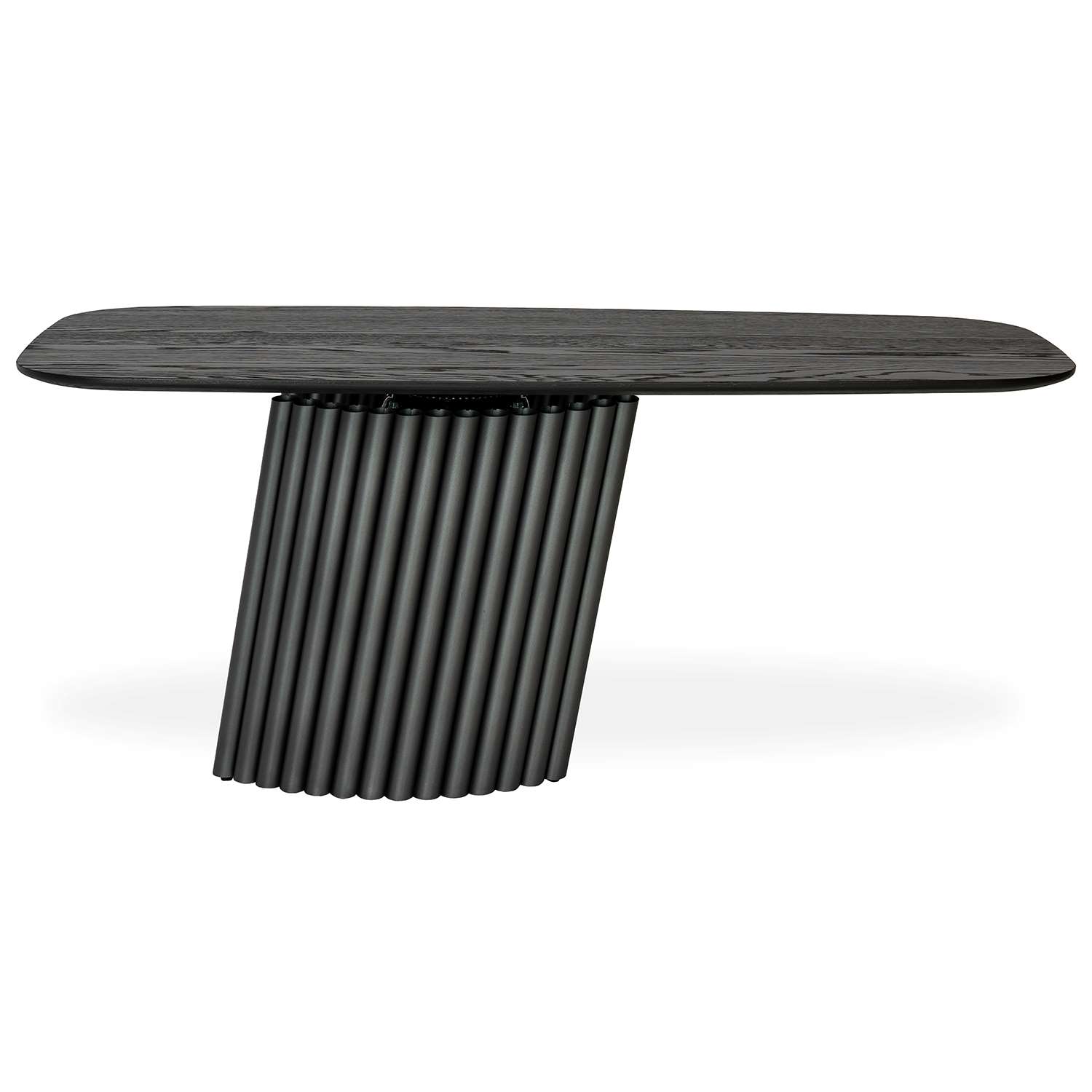 Chic and compact, the Pisa Coffee Table has a solid black oak wood top with an asymmetrical structure and 360 degree swivel. The top's textured wood grain contrasts the smooth rounded components of its base, made from powder-coated Anthracite metal. With its innovative design and monochromatic color scheme, Pisa has a sharp, fashionable look.