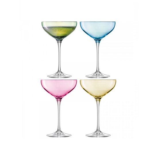 [0] => Set of 4 Polka champagne saucers in pastel colors.