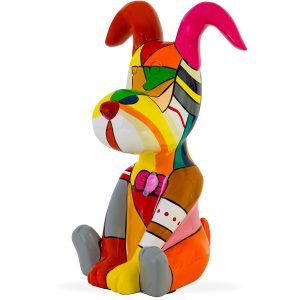 The Pop Snoopy Sculpture features a geometric, colorblock pattern in bright shades of orange, pink, yellow, green, and blue. The sculpture's cartoon-like proportions and upturned snout give it a sense of fun and whimsy, making it a perfect gift for lovers of pop art. Pop Snoopy is made of resin with a glossy finish and can easily stand on any flat surface.