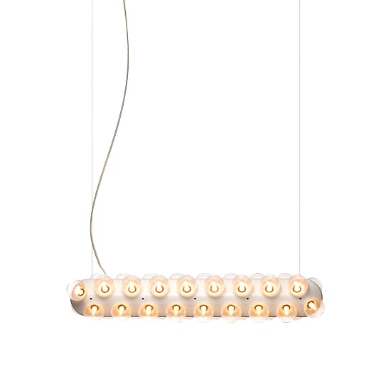 [0] => The Prop Light Suspension Lamp, created by Bertjan Pot, was designed to fit in any interior and illuminate even the farthest corners of every room. The warm-toned LEDs have glass bulbs that mimic the look of a traditional incandescent lightbulbs for a contemporary yet timeless look, and the 36 LEDs are rated for 50,000 hours of use. The light is also dimmable, so you can adjust the level of light to your preference. Matching canopy included with purchase.