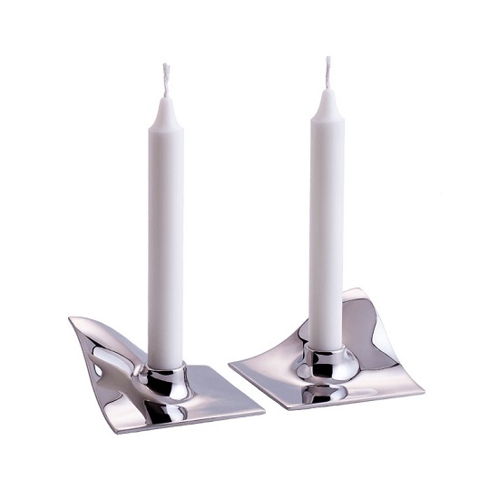 [0] => quartet 2 candleholder soled mirror polished stainless steel design: hans bolling