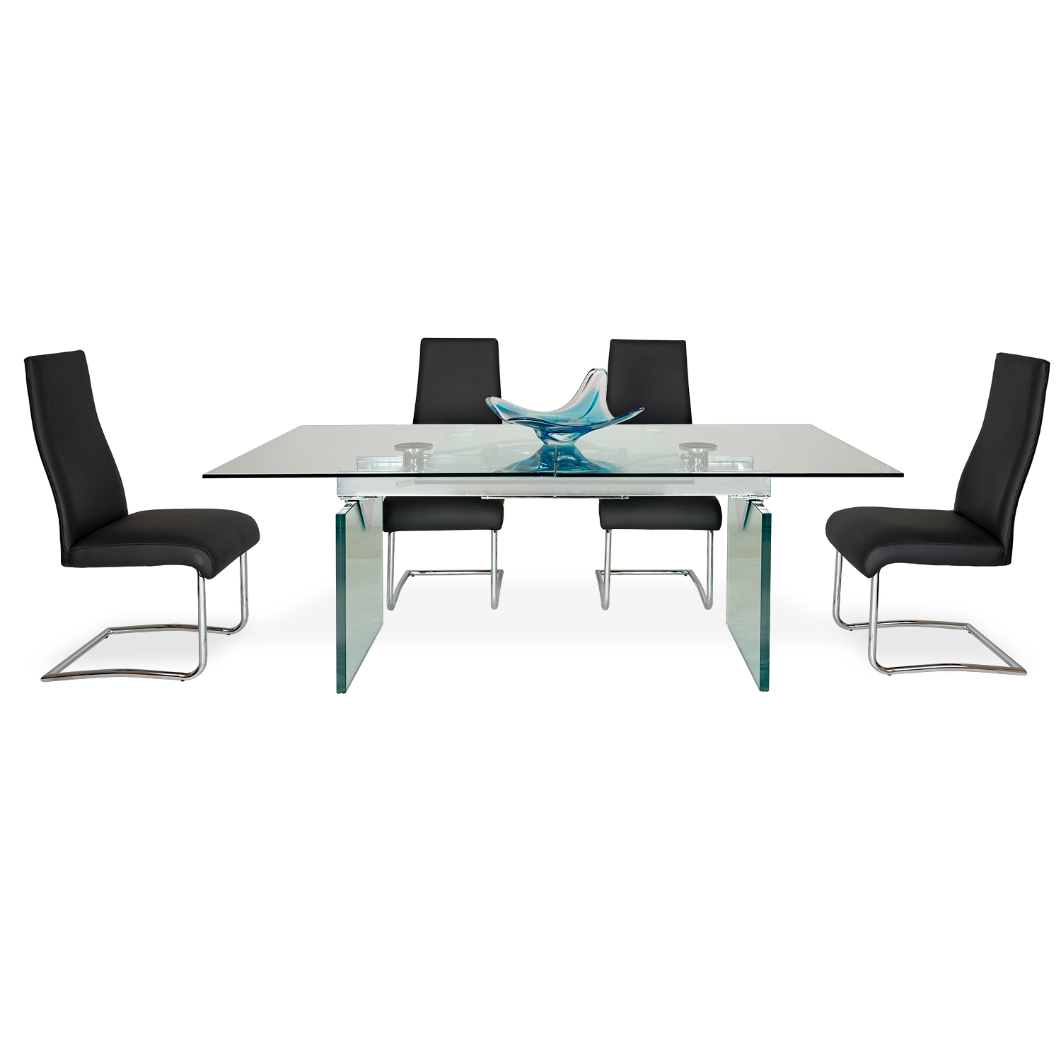 [0] => quasar rectangle dining table 39"x78" ext to 110", natural glass 00, chrome 37