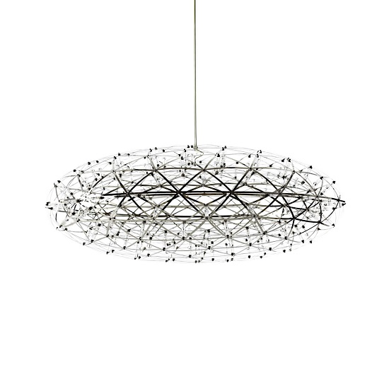 [0] => The Raimond Zafu Suspension Lamp, designed by Raimond Puts, has an ultra-modern look that takes inspiration from the extra-terrestrial, with an elliptical silhouette reminiscent of a flying saucer and 162 small LEDs. The light is dimmable so you can adjust the lamp to your preferred level of brightness, and the LEDs emit a warm 2,500K glow and are rated for 50,000 hours of use. The Raimond Zafu lamp's contemporary look will bring style and illumination to any modern home.