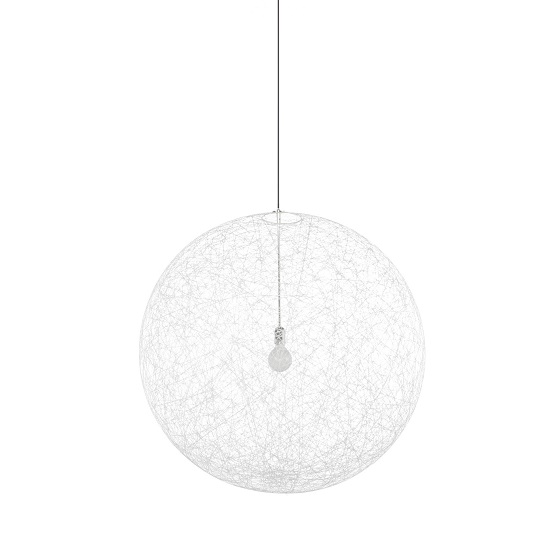 [0] => The Random Suspension Light, designed by Bertjan Pot, is a spherical light made from fiberglass soaked in epoxy resin with a chrome steel pendant in the center that holds the lightbulb. Each Random light has an open, textured structure unique to the individual lamp, and the web-like pattern creates artistic, abstract shadows. The LED lightbulb emits a soft glow that creates an inviting atmosphere and can be dimmed to adjust the level of light in the room. The LED bulb is included with purchase and has a 50,000-hour lifespan.