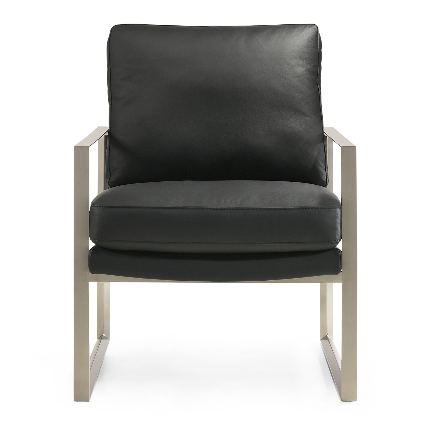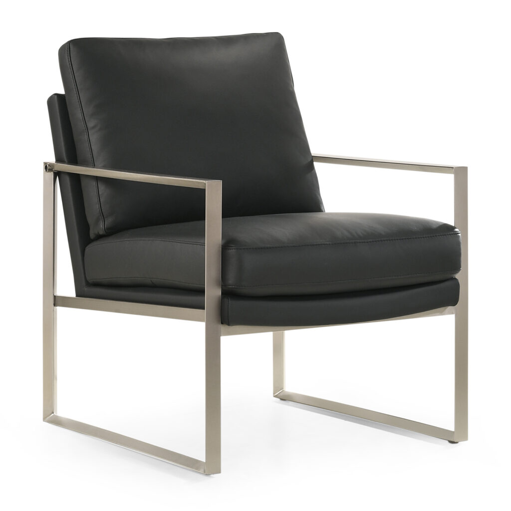 [0] => reagan occasional chair, 625 black linea full leather, brushed ss frame