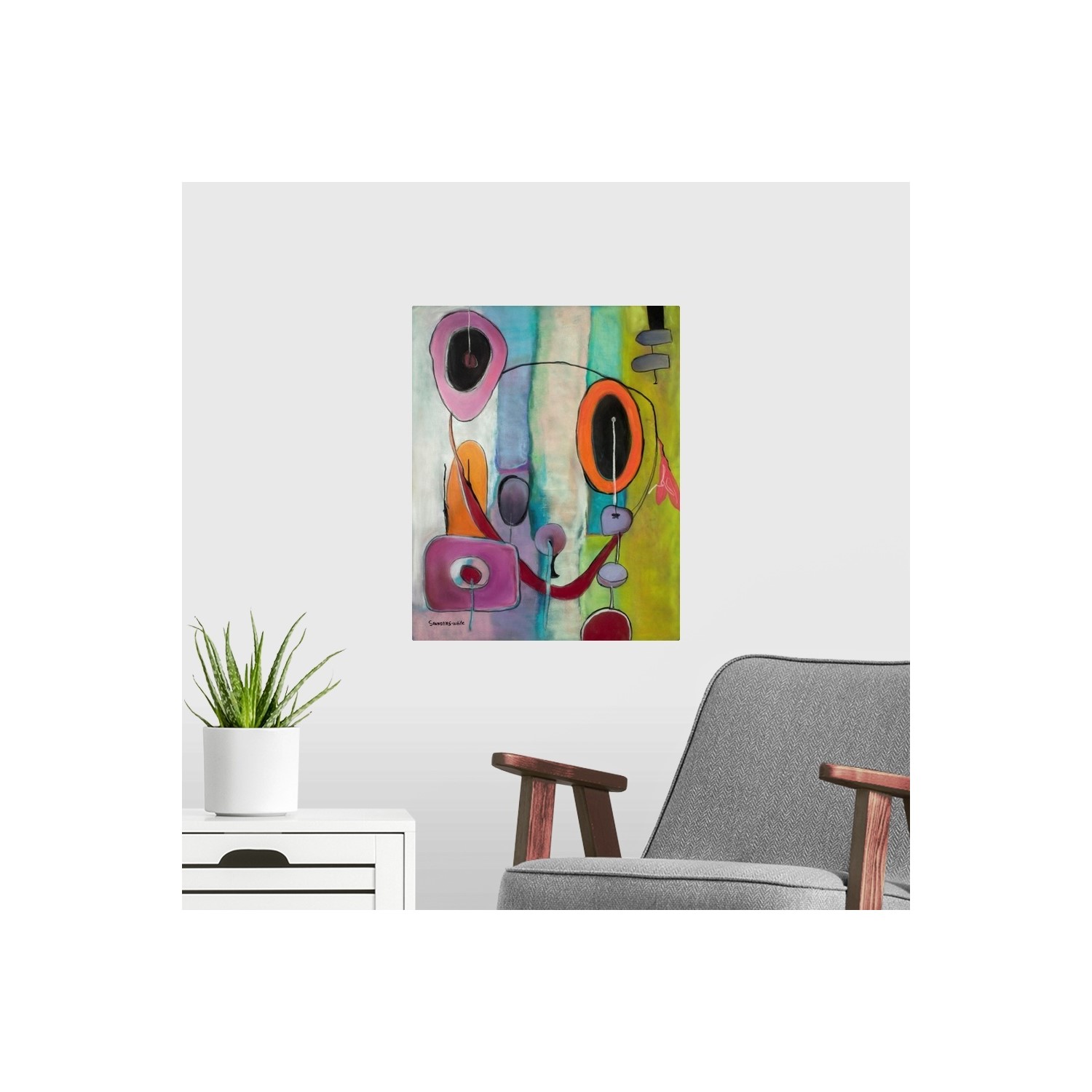 Add a playful and funky pop of color to your home or office with the Rear View Wall Art by Pat Saunders-White. This abstract work features rounded shapes and freeform lines brightened by hues of pink, orange, yellow, red, and blue, and balanced by areas of black and white. A glossy surface adds high shine to this quirky and vivacious artwork.