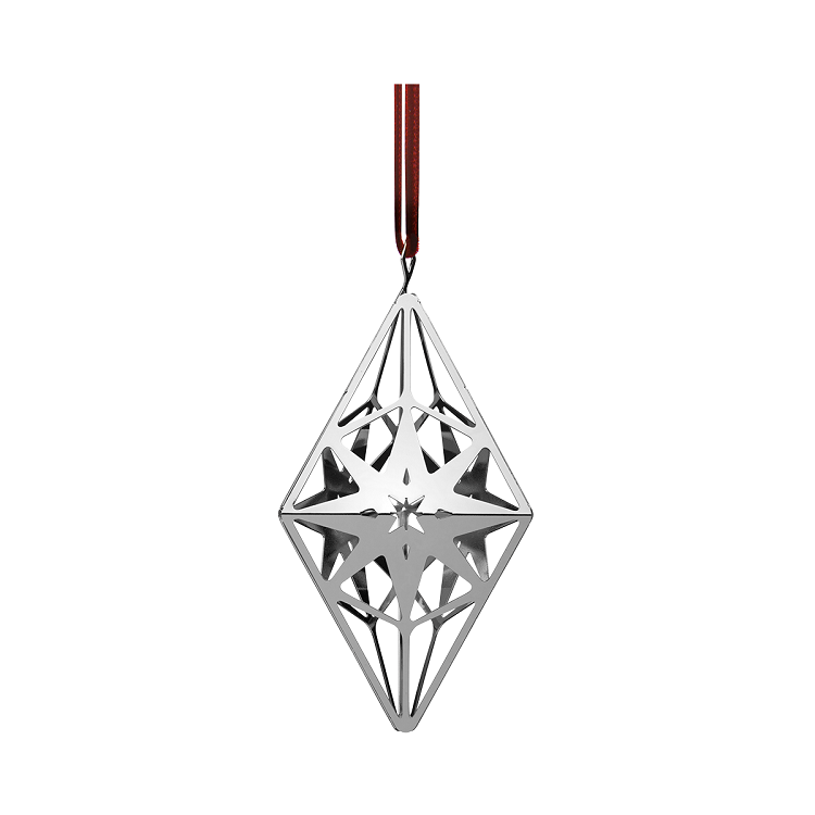 [0] => The Rhombus hanger, designed by Zarah Voigt for Rosendahl of Denmark, features timeless Danish design with a touch of contemporary style. Rhombus is crafted from silver-plated steel and brings a gleam and shine to your Christmas tree or your home when hung from a window or placed ornamentally in a vase.