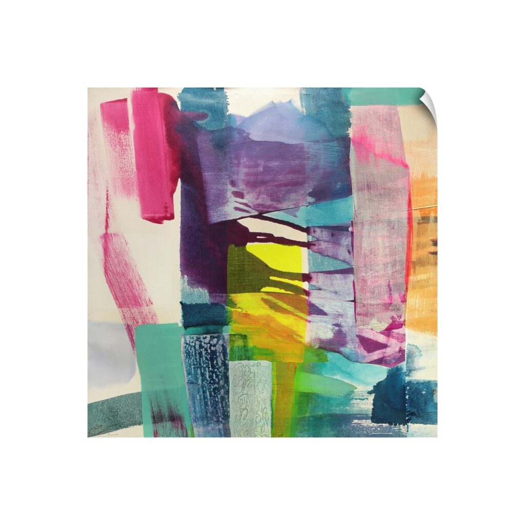Road to Hana II is a vibrant contemporary artwork by Cathe Hendrick. Broad vertical strokes of pink, blue, purple, and yellow mingle and flow together under a matte surface. This piece will add exuberance and a dash of fun to any bedroom or living area.