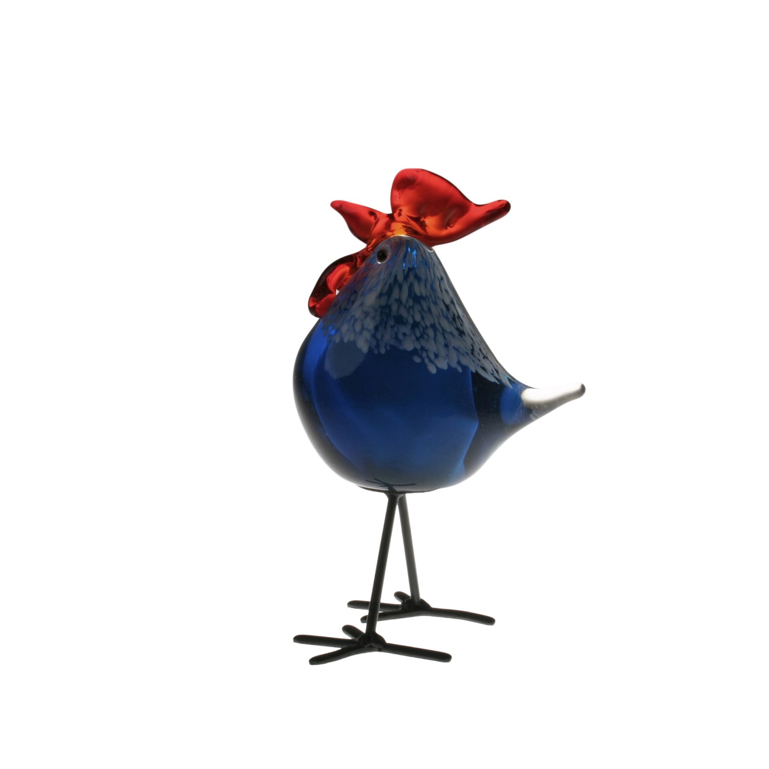 [0] => Liven up your surroundings and add a homestyle charm with the Blue Rooster on Legs. This rooster stands in an upright position on black legs and has a glossy blue body with white accents in a stippled pattern, plus a beak, comb, and wattles in contrasting red. Perfect for adding whimsy to a table, sideboard, or cabinet, the Blue Rooster on Legs can stand alone or in a group with others of its kind.