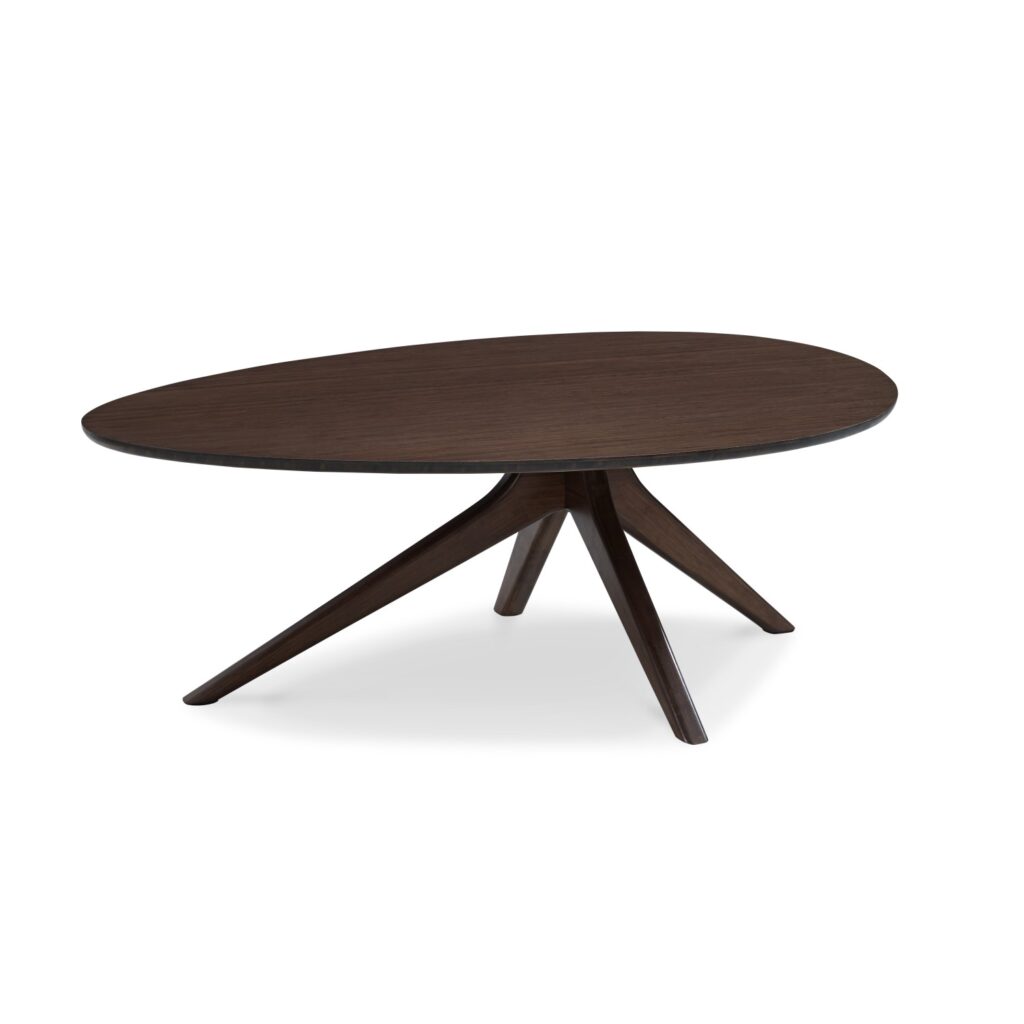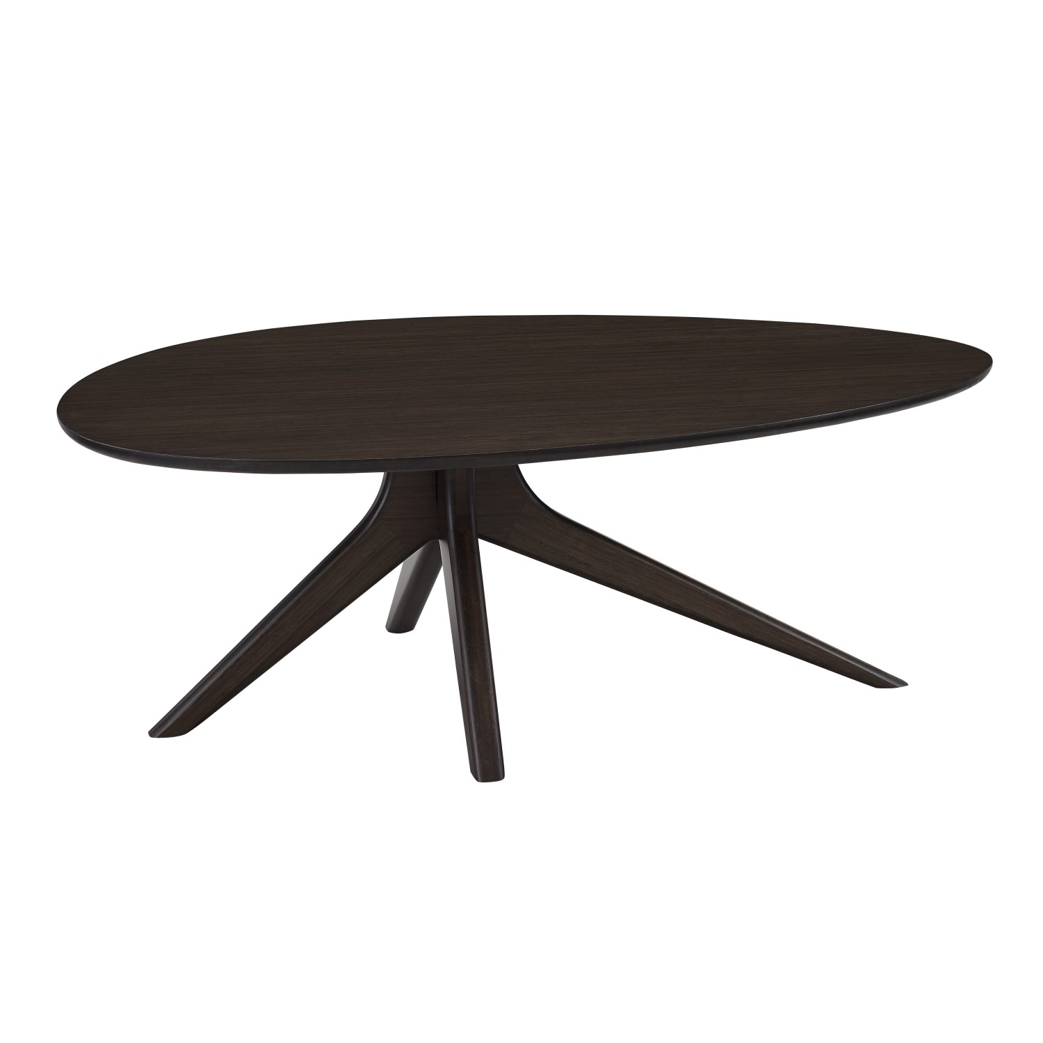 The Rosemary Coffee Table has a minimalist, sculptural design inspired by Scandinavian modernism. Its asymmetrical oval top perfectly balances the tapered legs, and the Black Walnut finish has a rich hue that enhances Rosemary's elegant look. Rosemary is made from solid Moso bamboo, a sustainable and renewable resource.