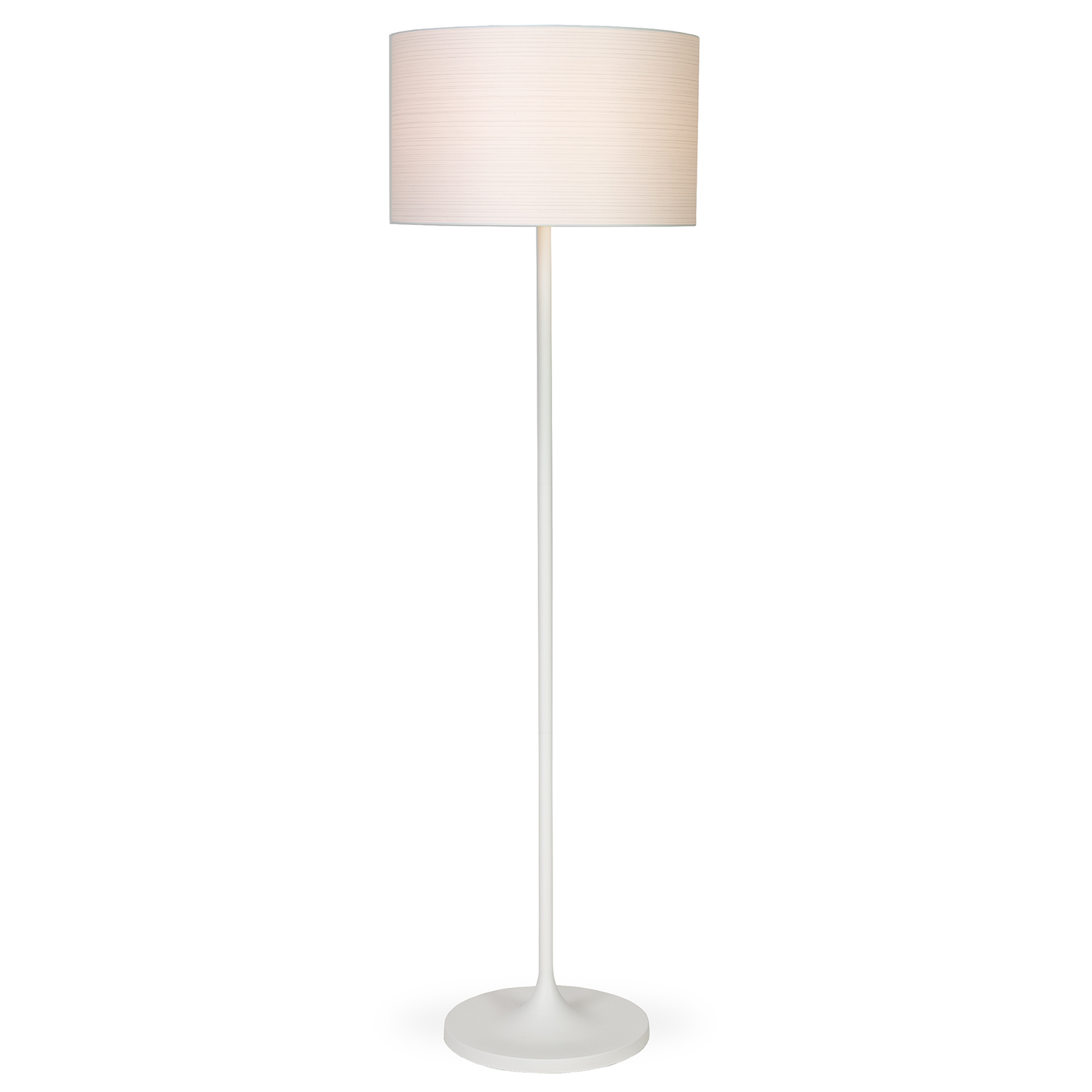 Inspired by Scandinavian design, the Ryker Floor Lamp has a classic, minimalist form with a cylindrical shade and slim, tulip-style base. The hardback lampshade is made from white Japanese paper (fabric) with a subtle horizontal striped pattern, supported by a matte white metal base. Ryker has an on/off rotary switch and a clear cord. Its simplified, timeless design will let it blend seamlessly with a variety of interiors. Takes one 100W incandescent or 20W CFL bulb, not included.