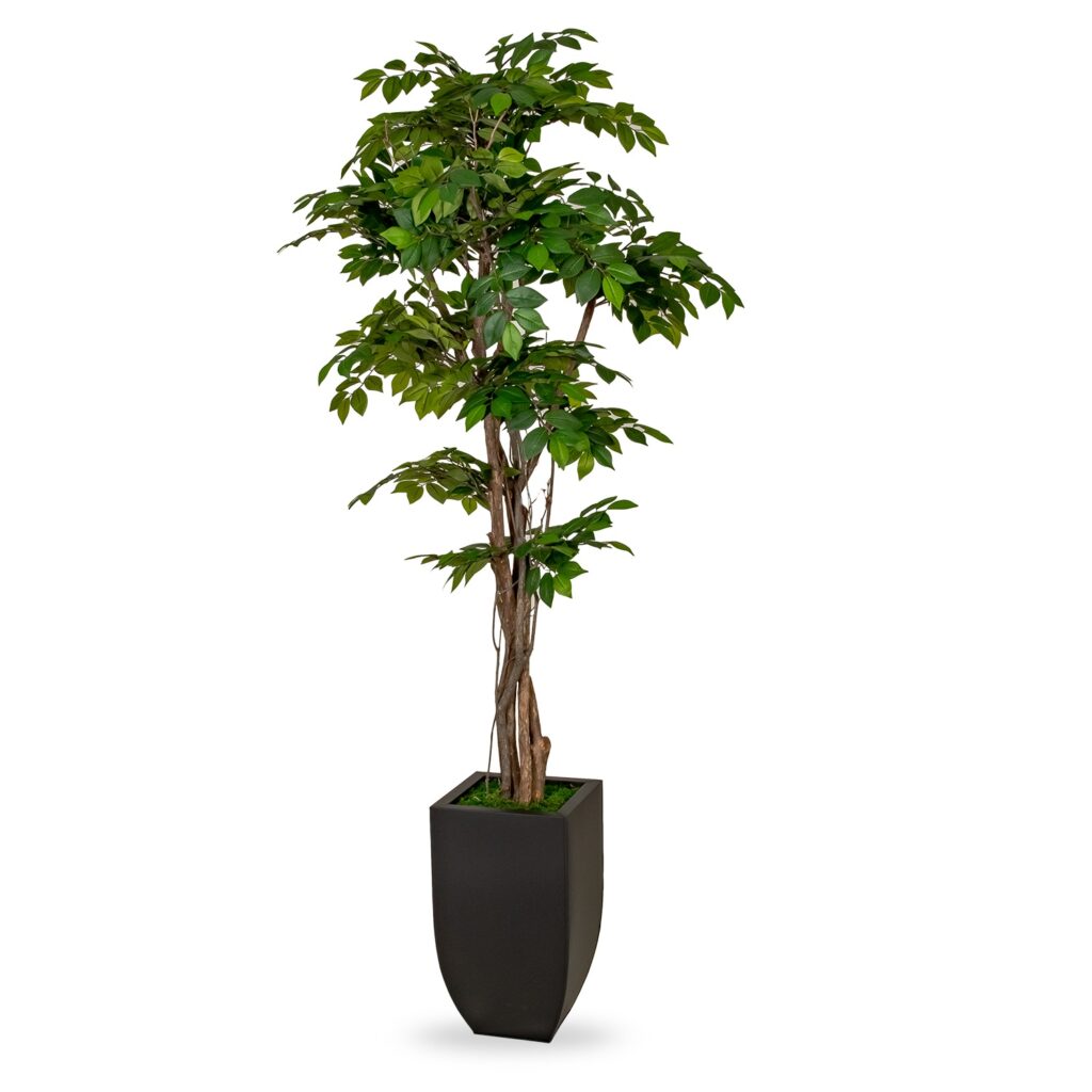 The Sakaki Plant, which comes in a black planter with decorative moss, is an attractive artificial tree that brings bright green to your living room, dining room, or office -- all without needing to be watered!