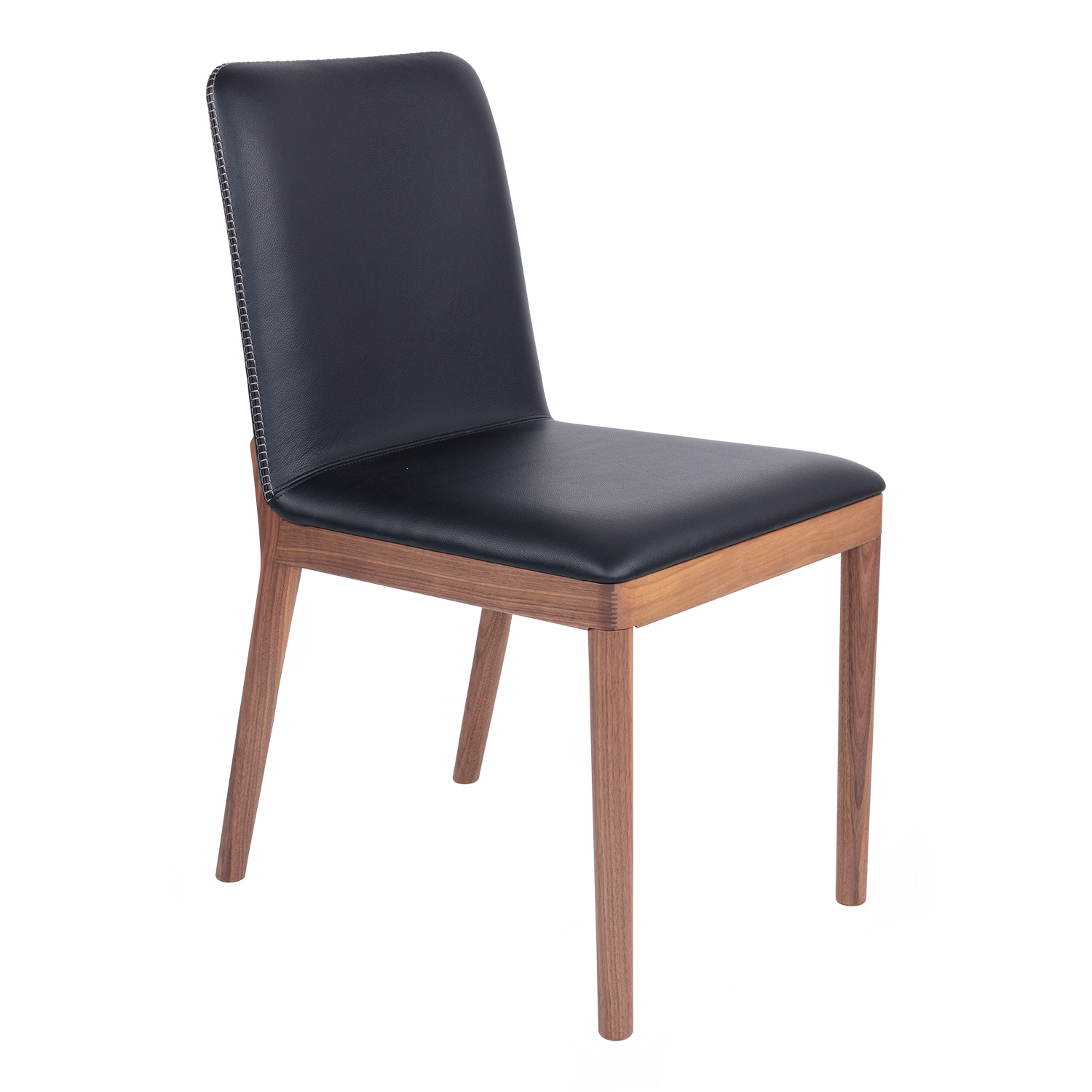 The Salt&Pepper Chair features a minimalist look inspired by a mid-century modern aesthetic. Contrast stitching in beige ties together the slender legs of the beautiful oiled walnut base and the smooth black Polo leather seat, creating style without sacrificing comfort. The clean lines of the legs and seat make the Salt&Pepper chair the perfect dining companion to the Salt&Pepper table.