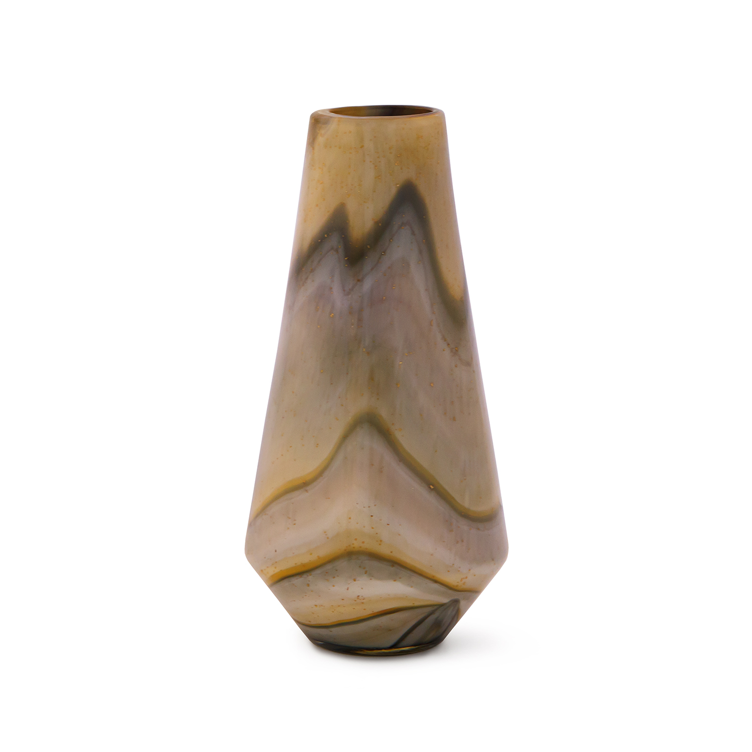 [0] => The Sand Tapered Glass Vase features neutral earthy tones inspired by the joy of playing with sand. Rich browns layer on the surface of this hand-blown glass vase, with the structural angles complementing the curves of the layers. A sleek, minimalist piece perfect for accenting any space.