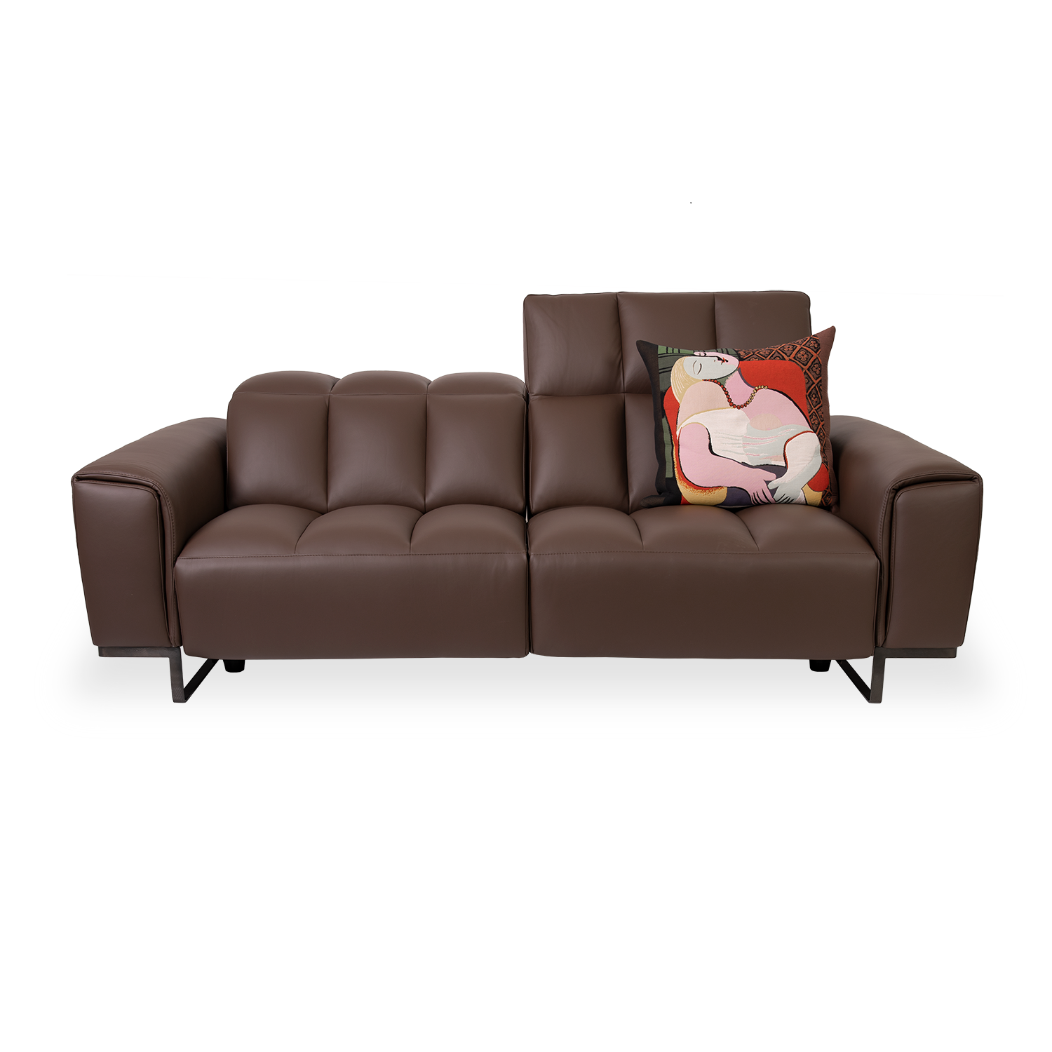 [0] => The Savona Sofa, made in Italy, features smooth chocolate Boston leather, angular metal legs, and power motion seats with adjustable headrests and footrests for a stunning and contemporary look. Striking channel tufting creates elegant, side-by-side curves in the back and seat cushions that bolster the body, while the subtle silhouette of the legs provides sleek contrast against the thick cushions and wide armrests. Savona will be a stylish, eye-catching addition to any living space.
