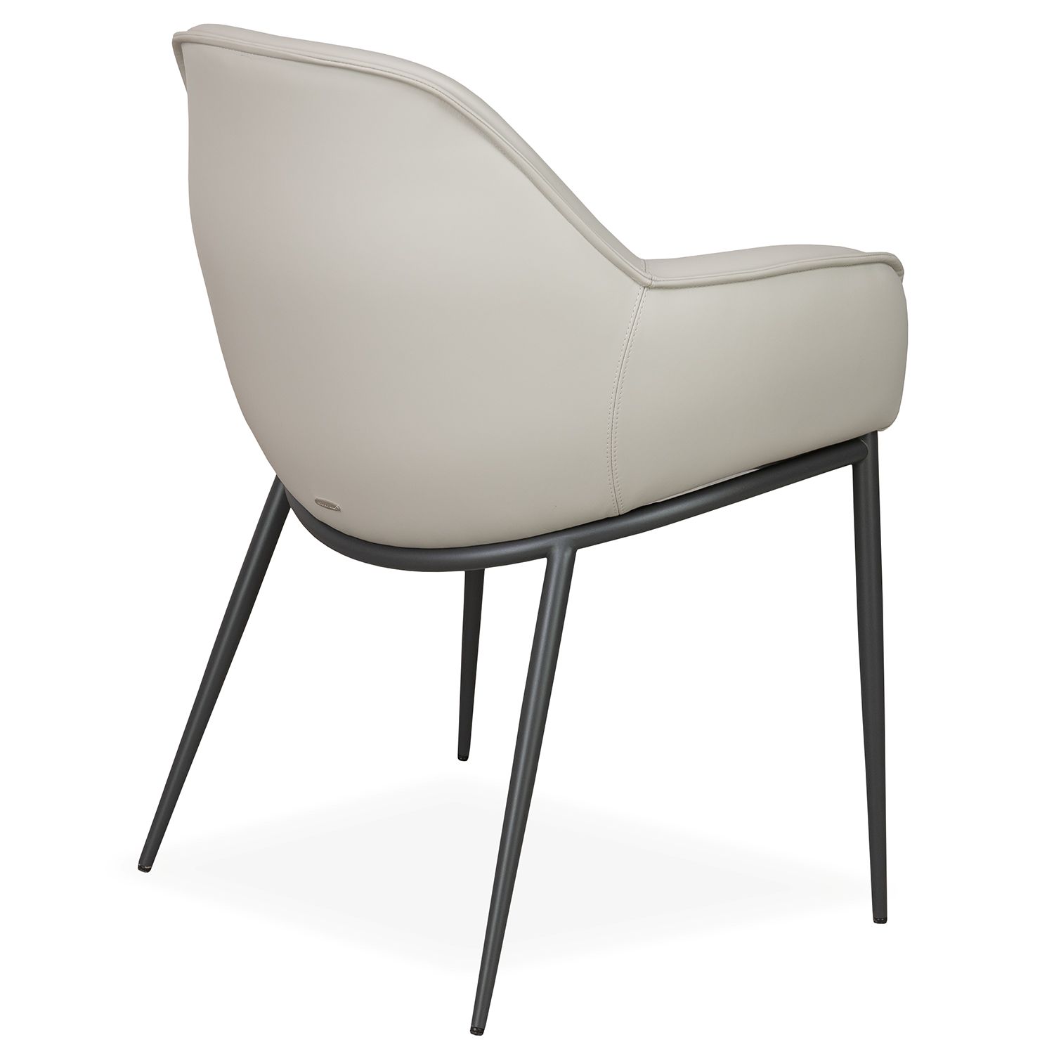 Made by Cattelan Italian, the Scarlett Dining Chair invites you to sit, dine, and relax. Scarlett's semi-aniline leather upholstery boasts a soft feel and a neutral shade of light grey, while the slim legs in graphite steel create an impression of lightness. This dining chair has a curved, contoured shape and a higher-than-average backrest to give you premium comfort and support through every meal.