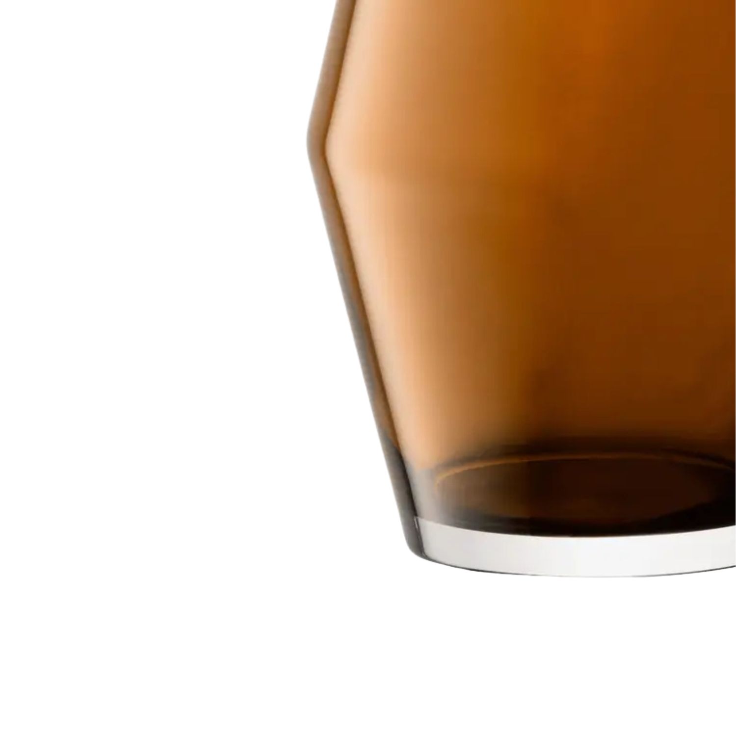 The Sculpt Vase is fashioned from mouth-blown glass in stylish cognac brown. Inspired by the wooden sculptures of Constantin Brancusi, this vase features a geometric form that elegantly showcases line, scale, and equilibrium. The Sculpt vase's large size makes it a statement piece ideal for displaying tall bouquets, branches, and foliage.