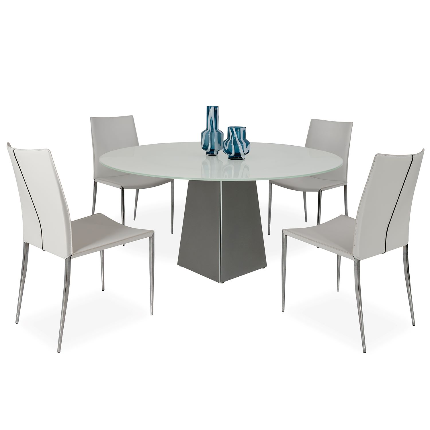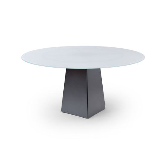 [description] => Wind 60" Round Dining Table - Carbon / Mushroom Etched Glass
