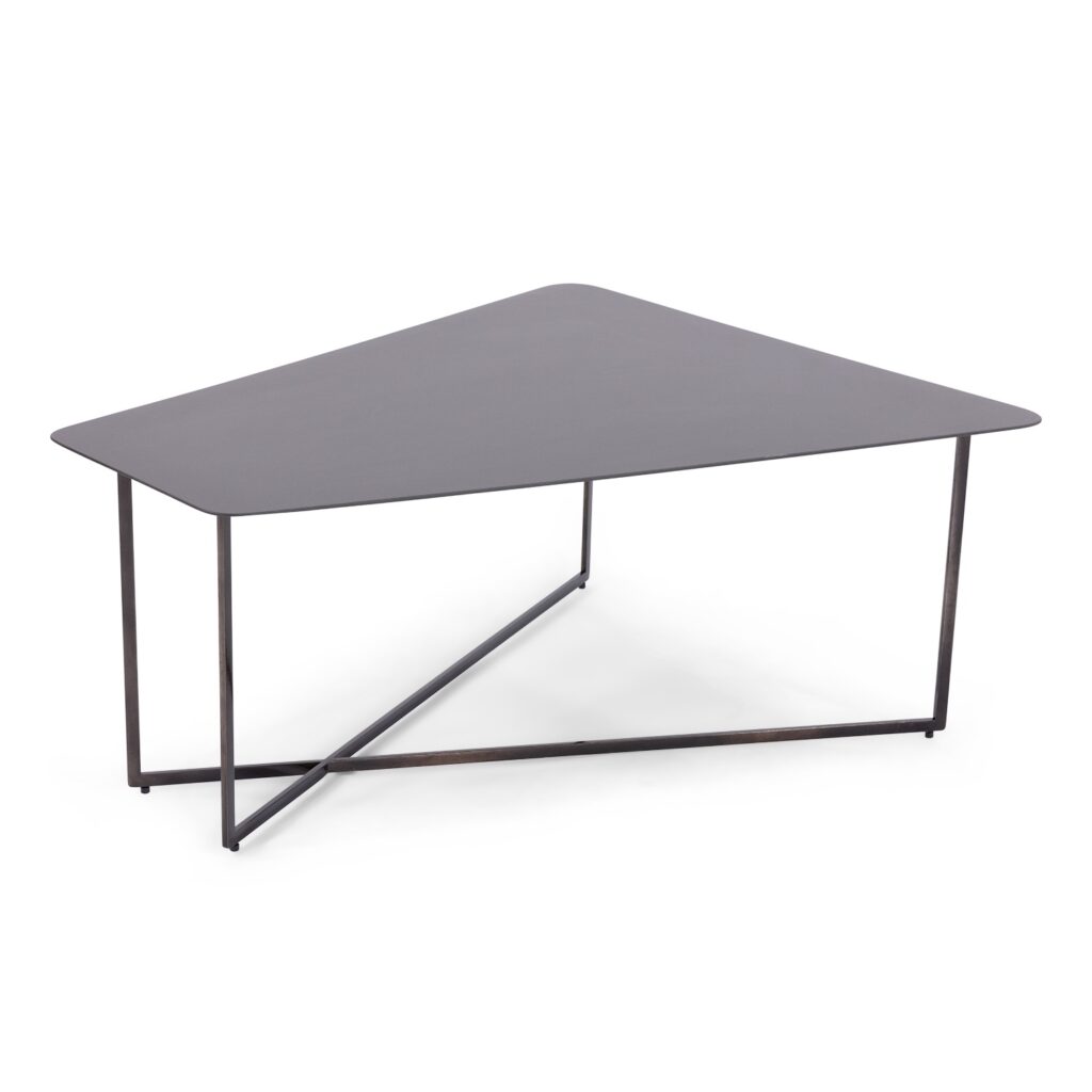 [0] => The Selfy Large Wedge Table is sleek and minimalist, with a lightweight graphite frame that is nonetheless sturdy. The slim legs angle in a complementary fashion to the wedge-shaped tabletop, creating a design that is simple and stylish.
