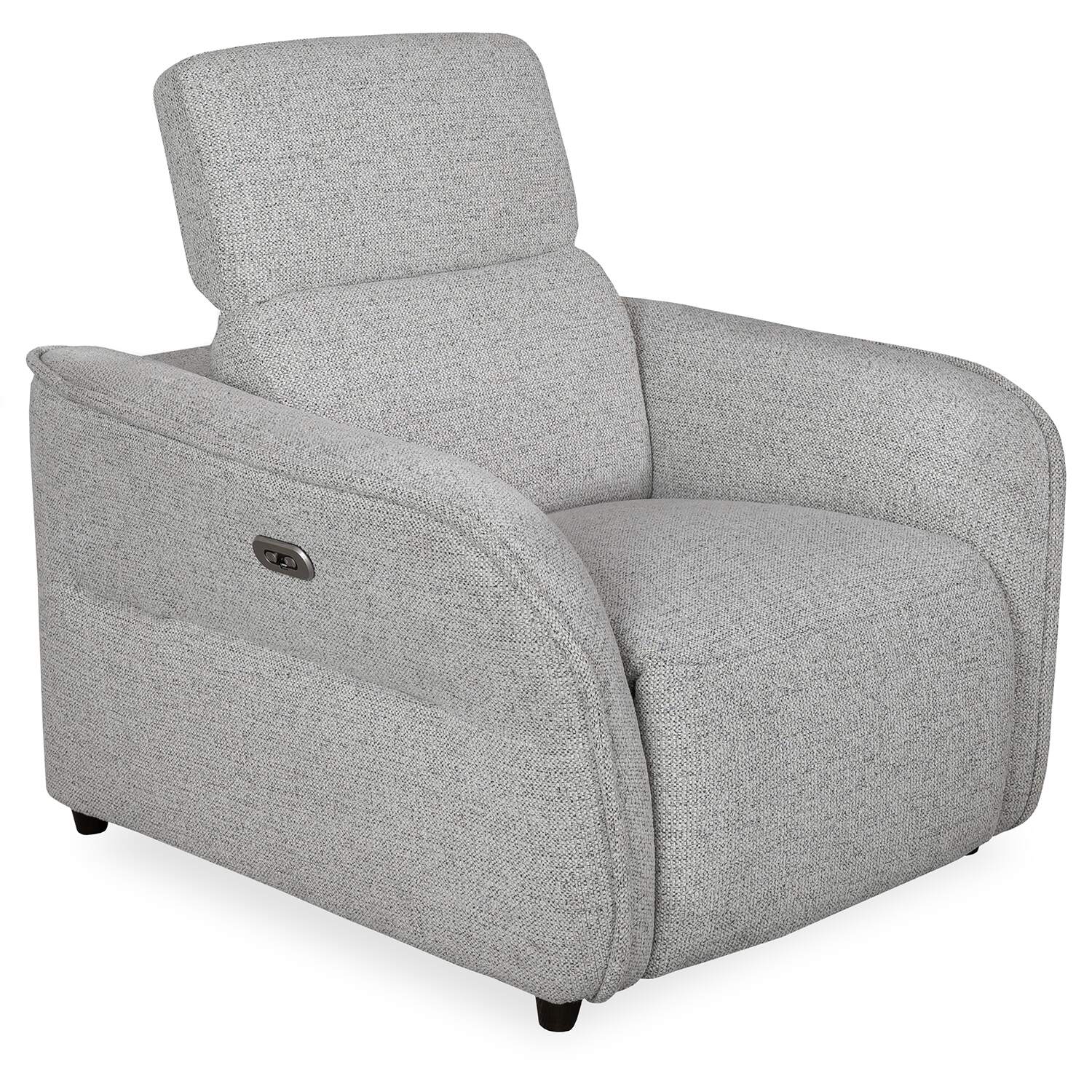 The Serena Chair combines clean lines with plush comfort in a compact silhouette. Upholstered in a softly textured oyster grey fabric, Serena features gently rounded arms and a low-profile frame that feels both relaxed and refined. With a power motion seat and headrest, a USB charging port, and cushions that have a bolstered, supported feel, Serena brings an elevated sense of ease to any modern living space.