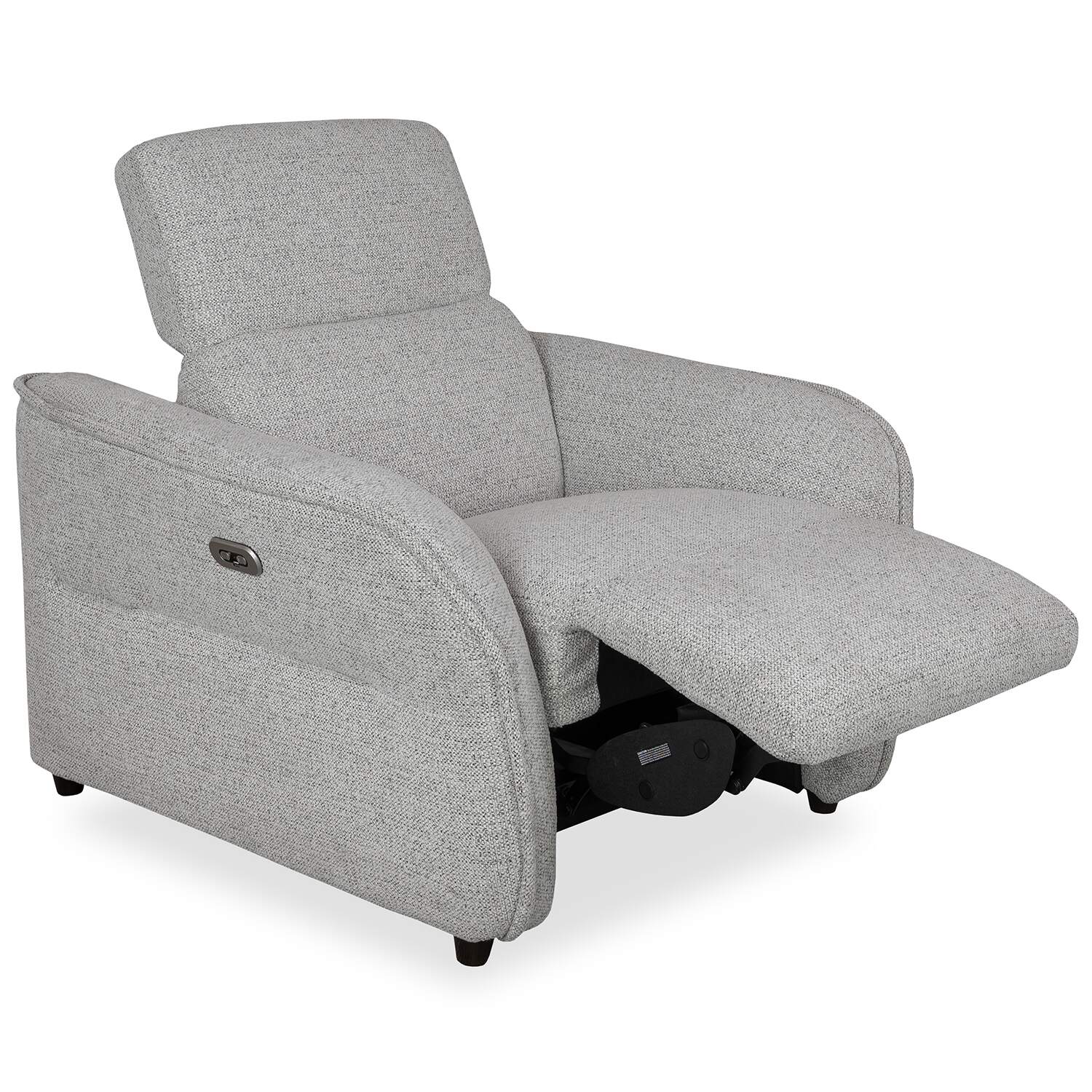 [0] => The Serena Chair combines clean lines with plush comfort in a compact silhouette. Upholstered in a softly textured oyster grey fabric, Serena features gently rounded arms and a low-profile frame that feels both relaxed and refined. With a power motion seat and headrest, a USB charging port, and cushions that have a bolstered, supported feel, Serena brings an elevated sense of ease to any modern living space.