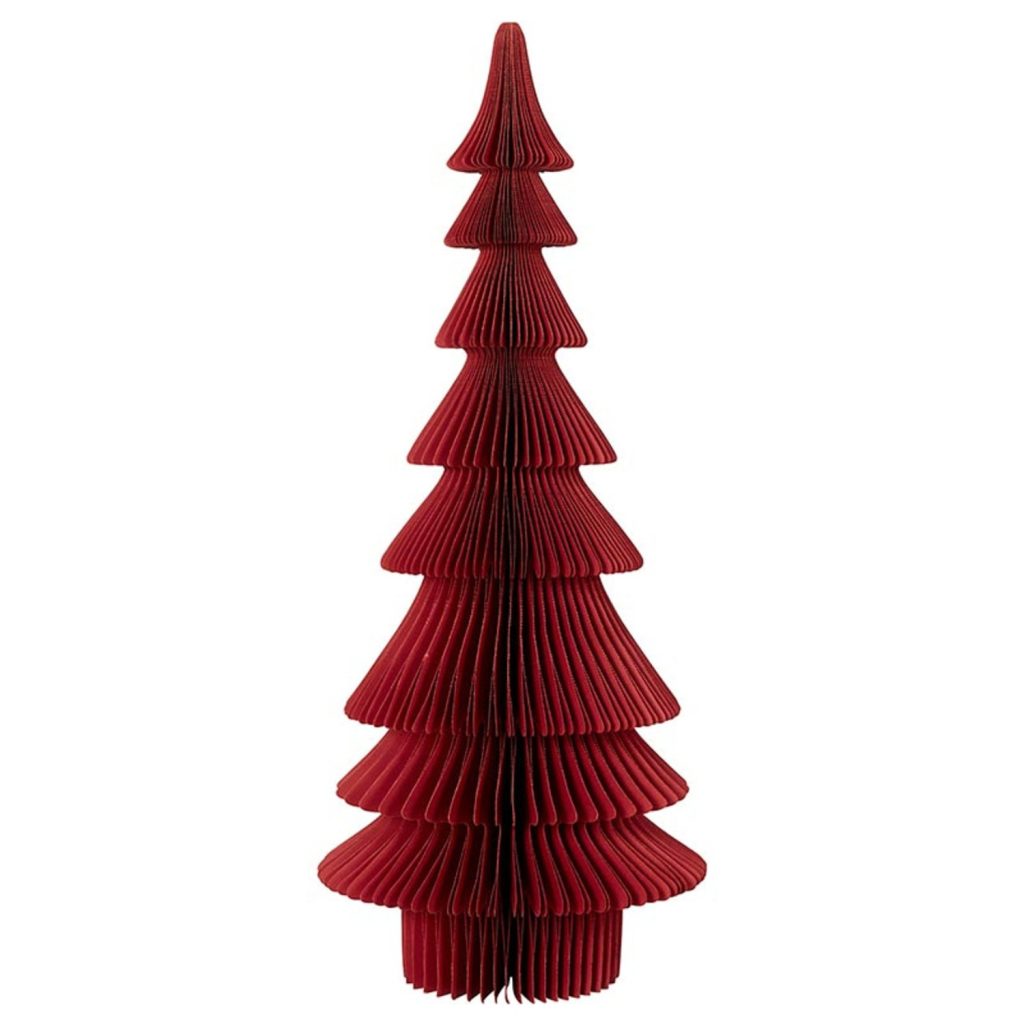 This 18-inch Siberian fir deep red paper tree adds a simple, modern touch to holiday decorating. Its honeycomb design opens into a full, sculptural shape that works well next to a fireplace, or as a tabletop accent. Built-in magnets make it easy to assemble, fold, and store away. Mix and match this tree with others of its kind for an easy way to add color and texture to any holiday display.