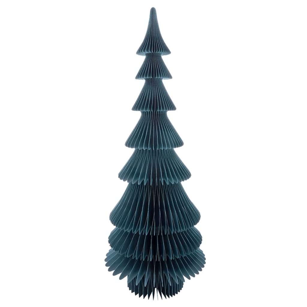 This 28-inch Siberian fir deep blue paper tree adds a simple, modern touch to holiday decorating. Its honeycomb design opens into a full, sculptural shape that works well next to a fireplace, or as a tabletop accent. Built-in magnets make it easy to assemble, fold, and store away. Mix and match this tree with others of its kind for an easy way to add color and texture to any holiday display.