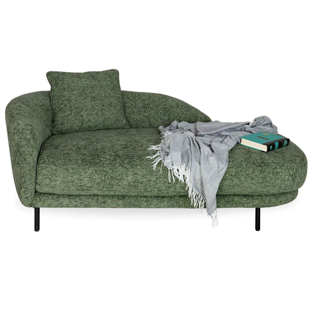 Elevate the comfort level and calm atmosphere of your living space with the Silas chaise. Cozy and contemporary, Silas features variegated olive green fabric, a rounded structure, and left-facing backrest with an included, removable pillow. Perfect for use as extra living room seating, in a reading corner, or as respite in a home office, Silas' earthy tone and inviting look will add serenity to any space.