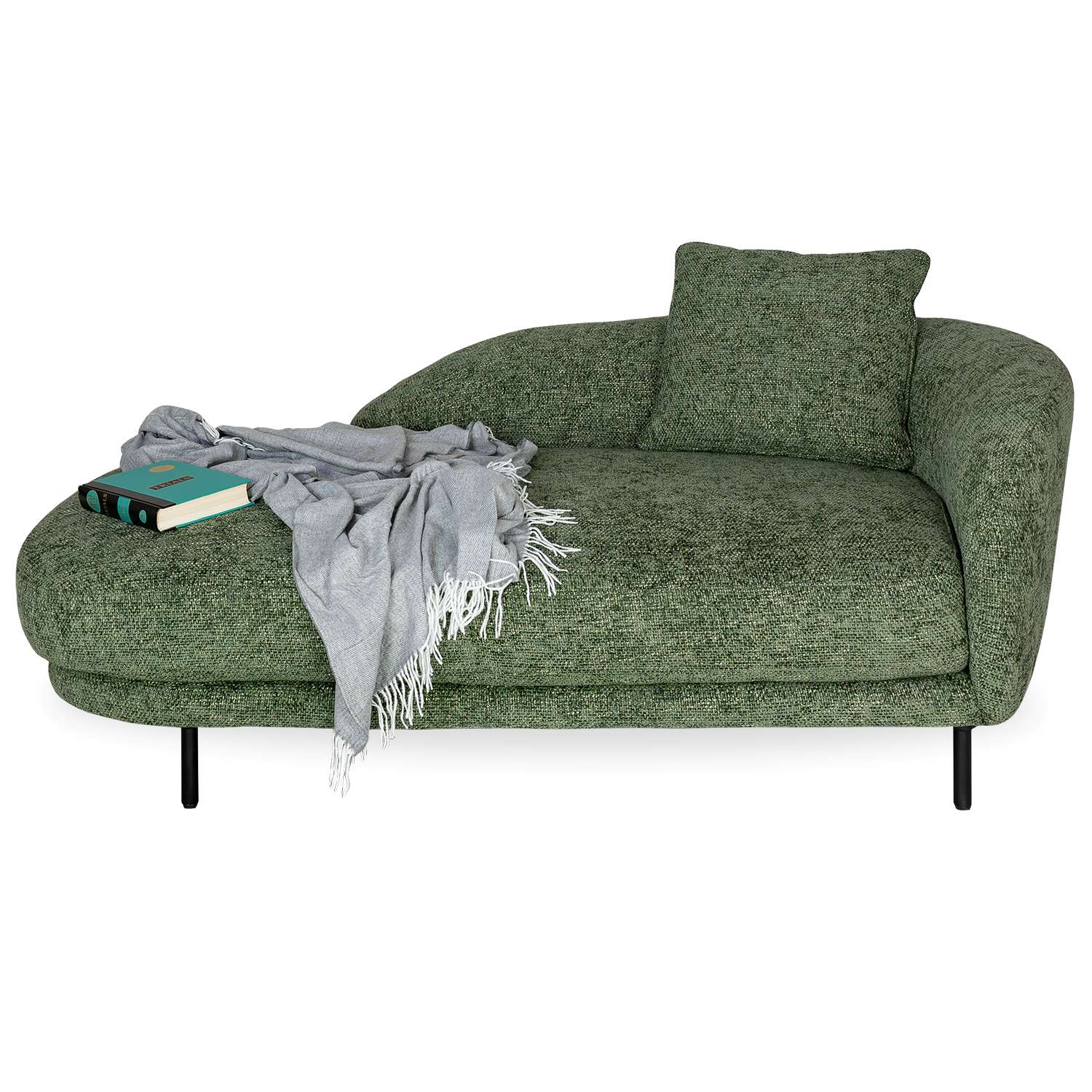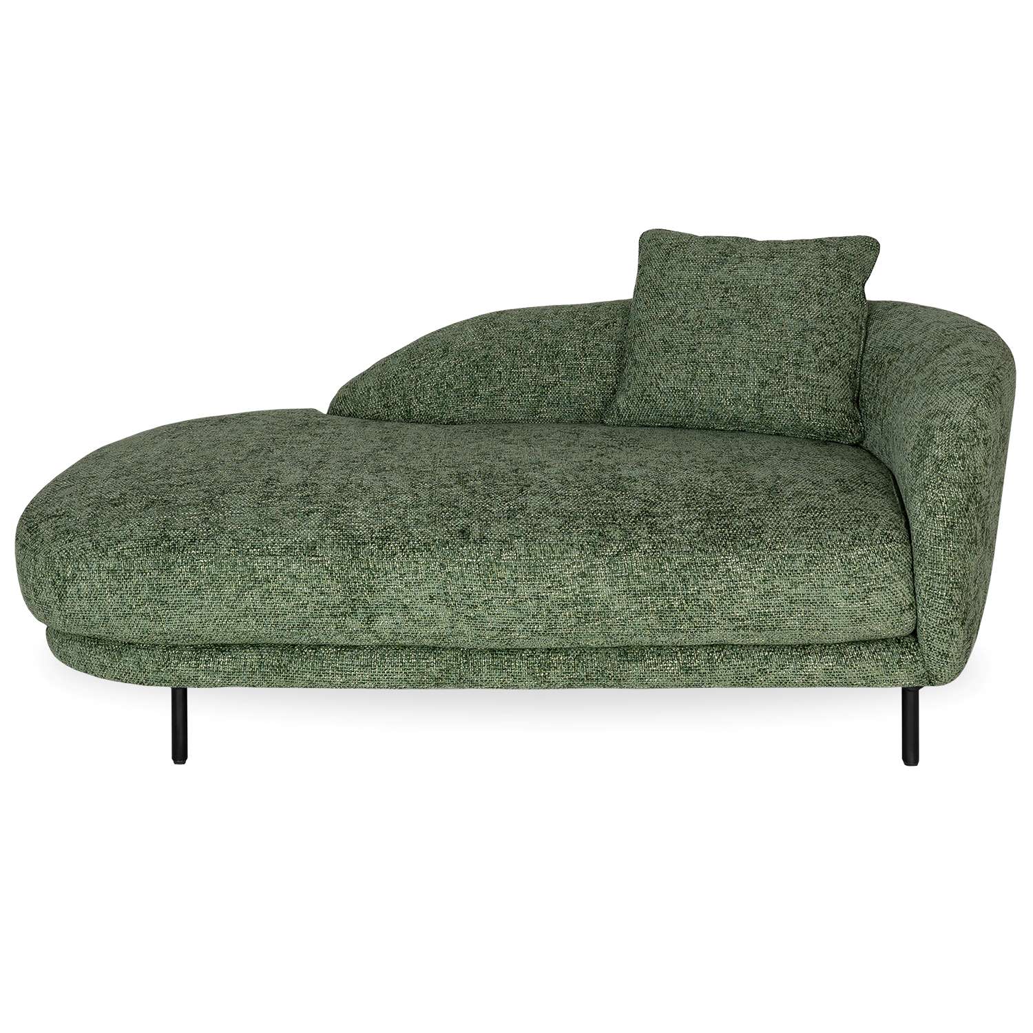 Elevate the comfort level and calm atmosphere of your living space with the Silas Chaise. Cozy and contemporary, Silas features variegated olive green fabric, a rounded structure, and right-facing backrest with an included, removable pillow. Perfect for use as extra living room seating, in a reading corner, or as respite in a home office, Silas' earthy tone and inviting look will add serenity to any space.