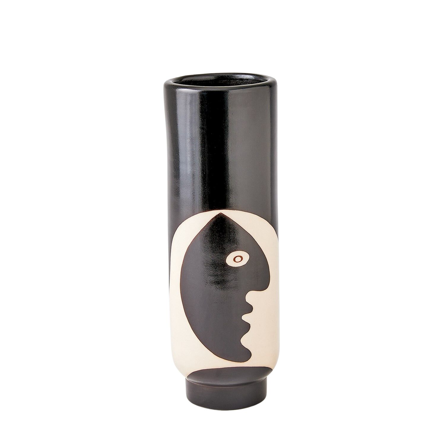 Bring a pop of modern art to your interior with the Simple Face Vase, featuring a curved and semi-abstract side profile of a face. With a black background and contrasting design with natural-toned elements, this vase is crafted in ceramic by Peruvian artisans who lovingly apply the finishing details by hand.