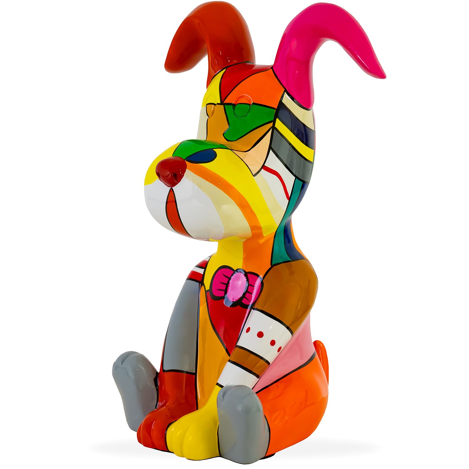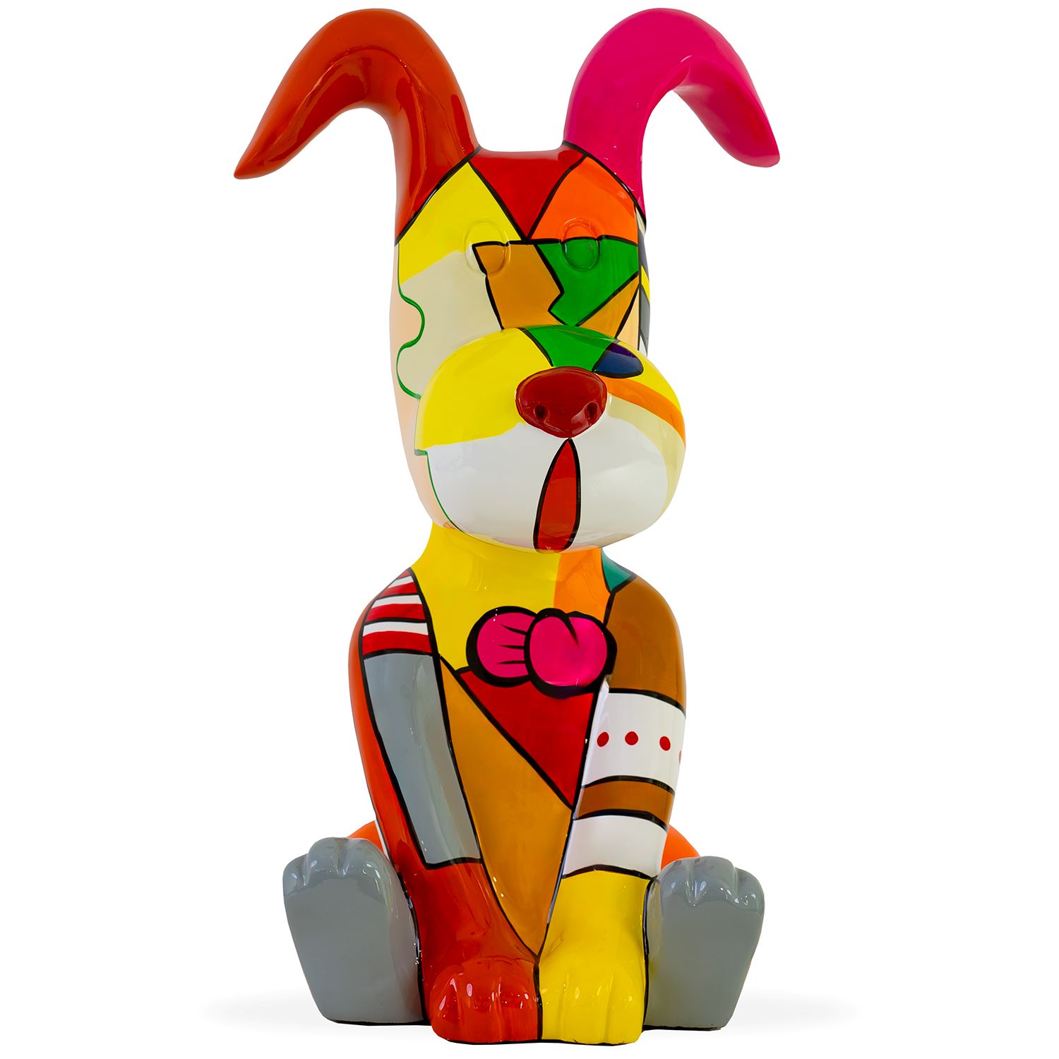 The Sitting Snoopy Sculpture features a geometric and striped pattern in bright shades of orange, pink, yellow, green, and blue. The sculpture's cartoon-like proportions and sitting pose give it a sense of fun and whimsy, making it a perfect gift for lovers of pop art. Sitting Snoopy is made of resin with a glossy finish and can easily be displayed on any flat surface.