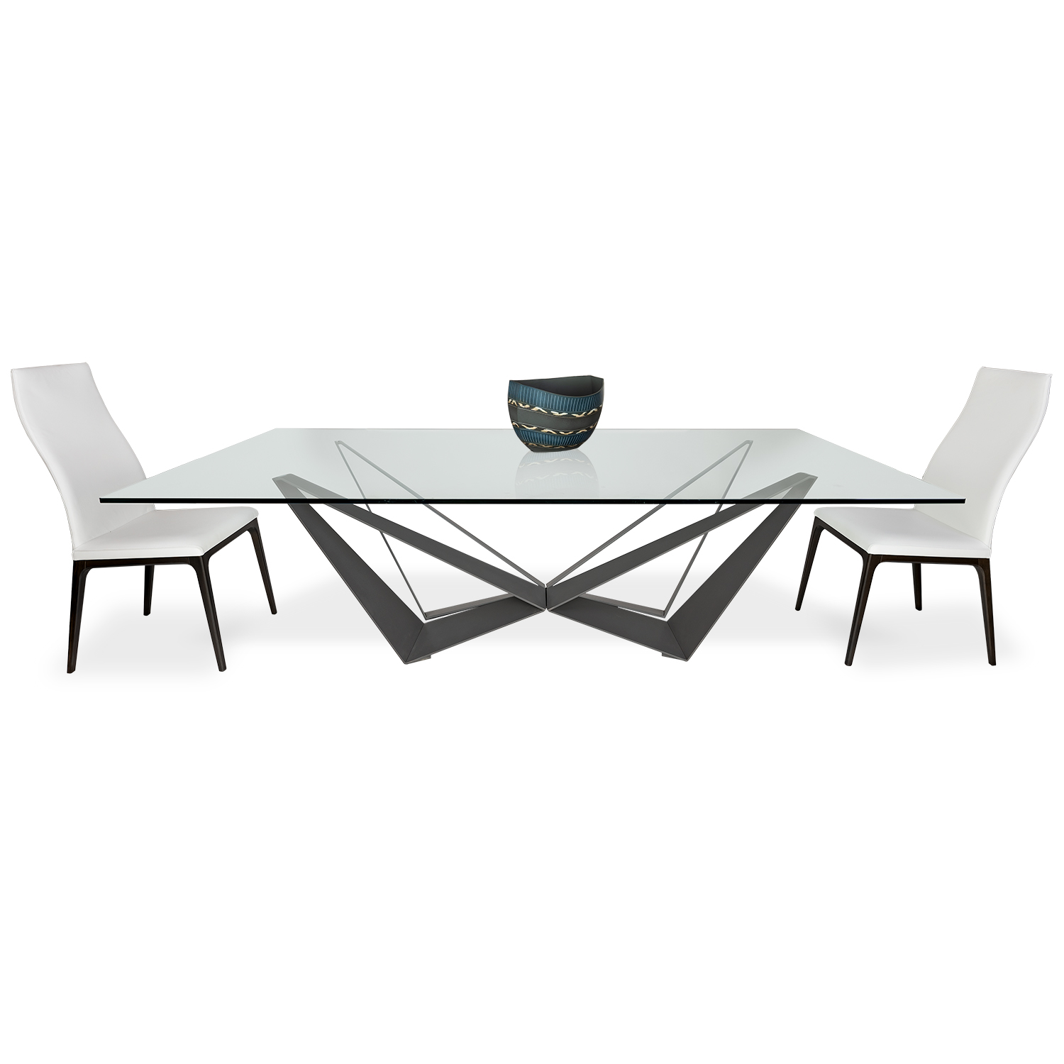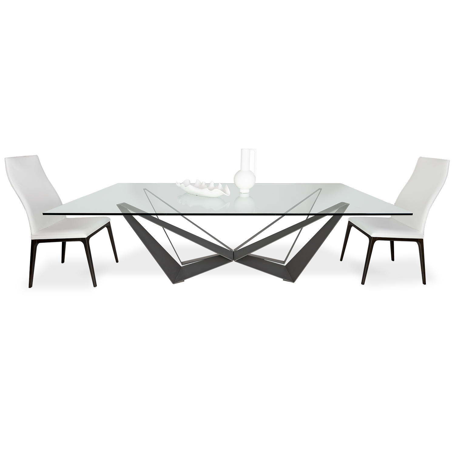 [0] => skorpio dining table 94.5 x 47", base in gfm69 graphite and top in standard clear glass. design by andrea lucatello