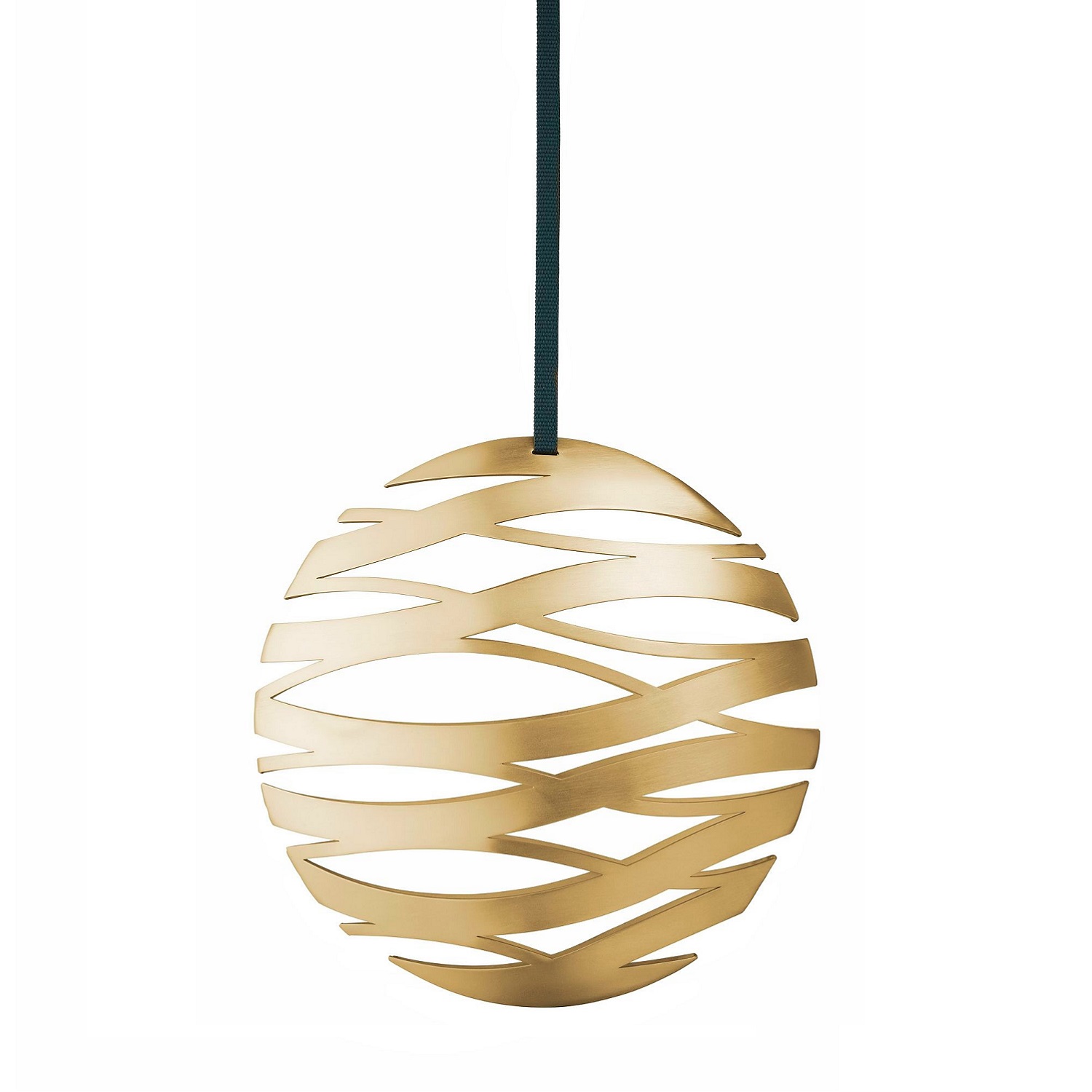 [0] => The Small Ball Tangle Ornament brings a warm and festive feel to your holiday decor. Brushed brass is molded into clean lines and curves, creating a special ball that that wil bring a warm glow to any table, tree, or decoration. An elegant interpretation of a classic figure. Available in several sizes.