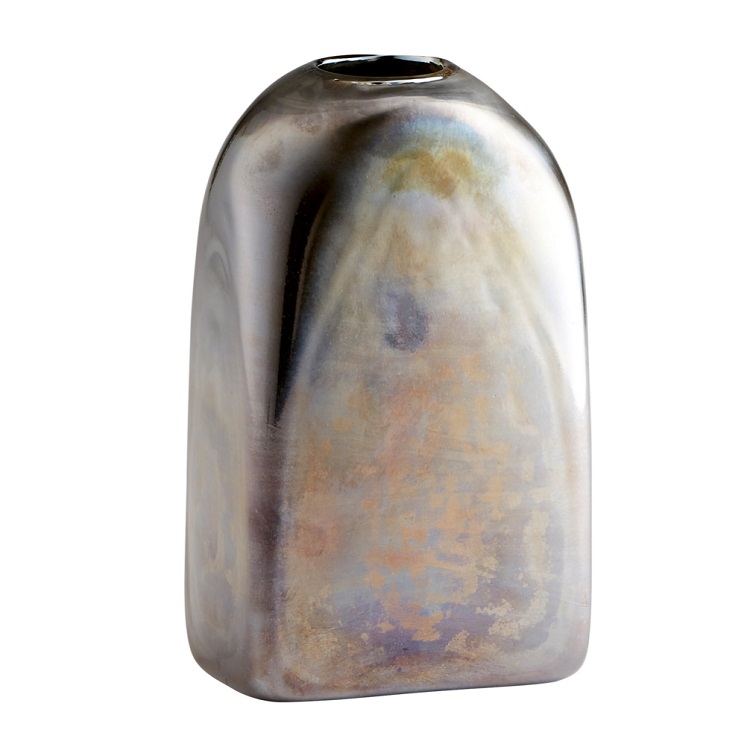 The Montague vase, available in gun metal glass, is a beautifully crafted vase whose dark glass reveals iridescent patterns of color. The Montague is subtle art at its best and serves as an eye-catching complement to existing design styles and colors.