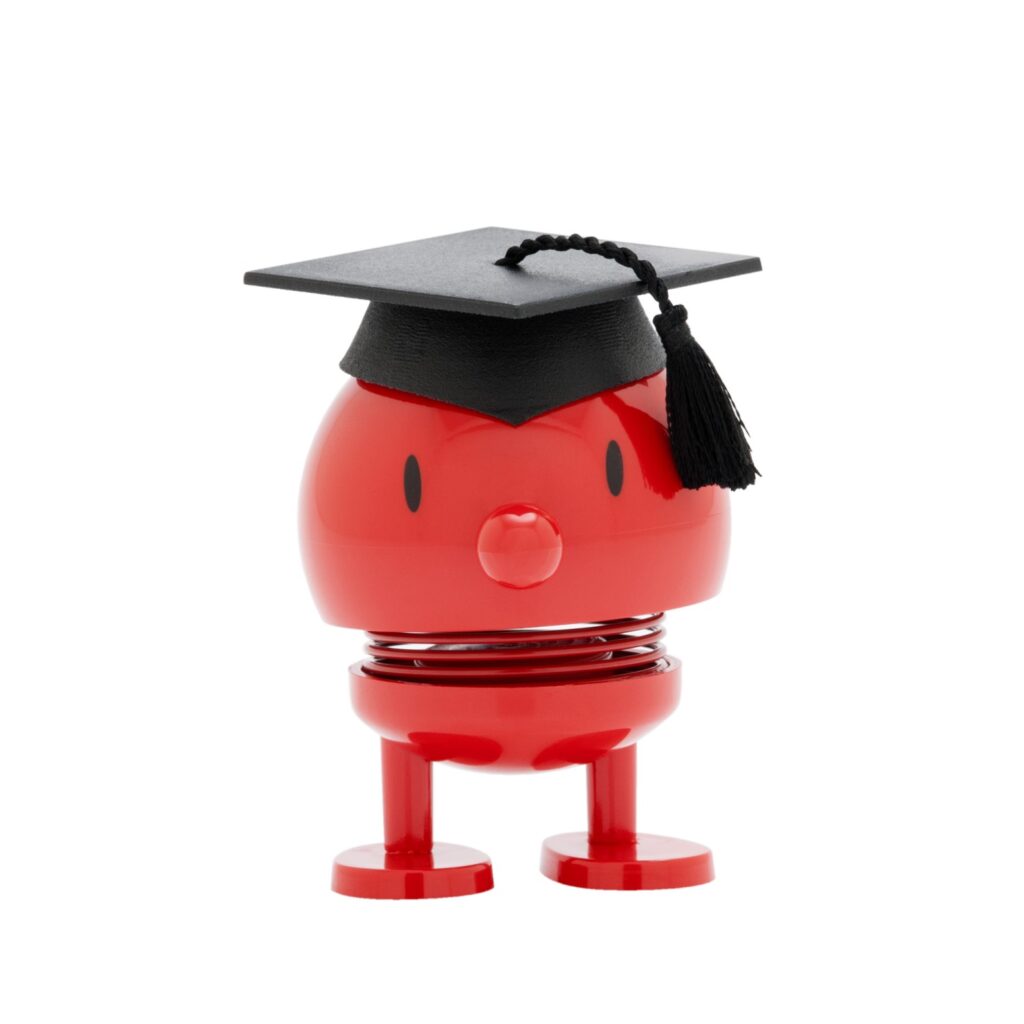 [0] => Celebrate your recent grad or gift this cheery scholar to an aspiring student! The Small Red IQ Bumble by Hoptimist of Denmark adds attitude, fun, and joy to your home or office space. Minimalist yet adorable, this piece is perfect as a gift for yourself or for a friend, serving as a cheery reminder to start the day with a "hoptimistic" attitude.