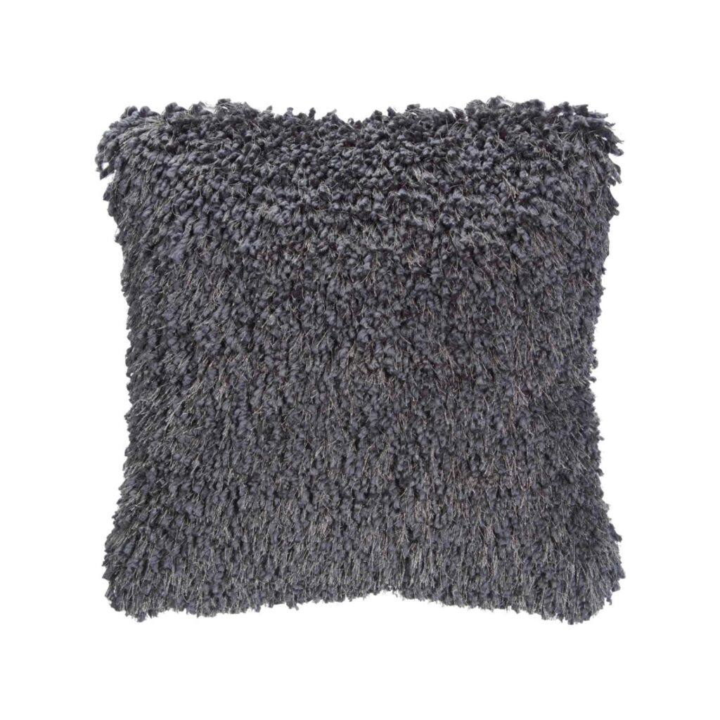 [0] => The soft shag pillow, available in charcoal, adds a touch of softness and texture living room, bedroom, or office space. The Shag pillow is soft and versatile and accords well with a variety of design styles.