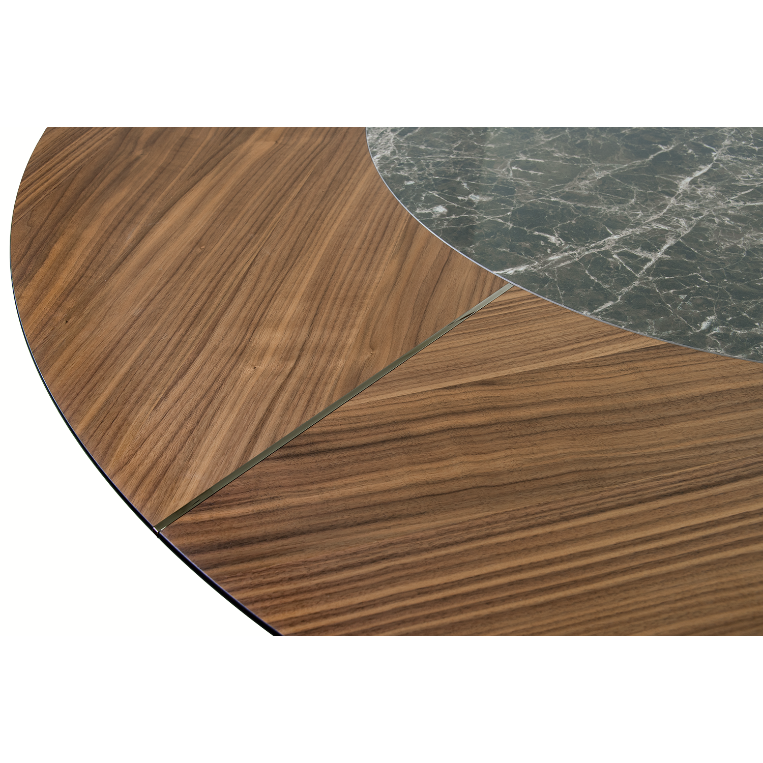 [0] => soho ker-wood dining table 180cm with graphite gfm69 base, canaletto walnut nc top and km10 emperador ceramicswivel insert. 70" round.