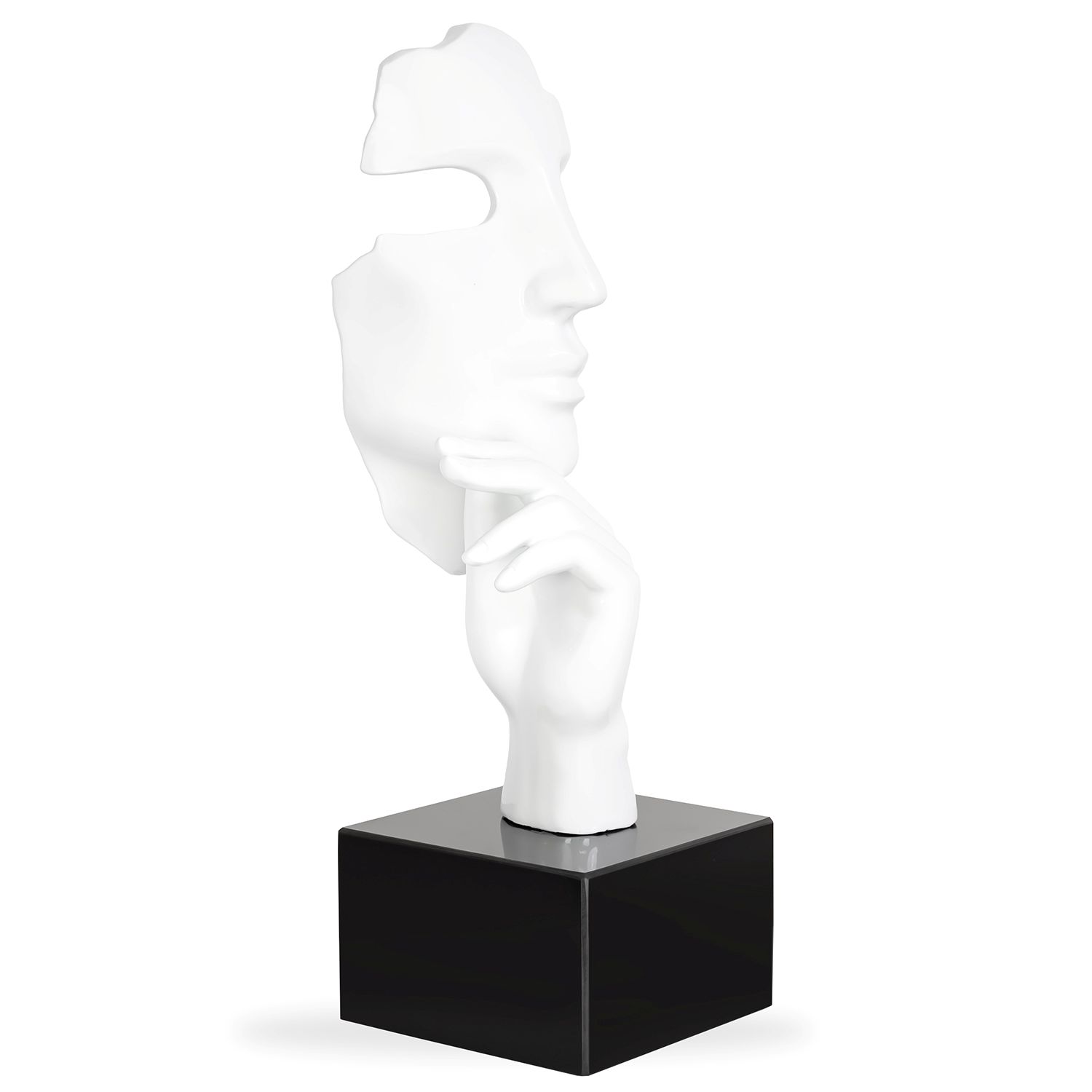 [0] => Sono Perplessa (Italian for "I am perplexed") depicts the cutout face of a figure with its chin resting on its hand in a contemplative gesture. Made of glossy white polyresin and standing on a black stone base, Sono Perplessa unites classic simplicity with modern flair.