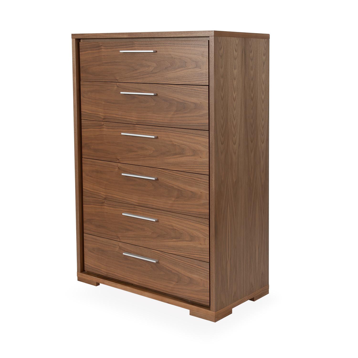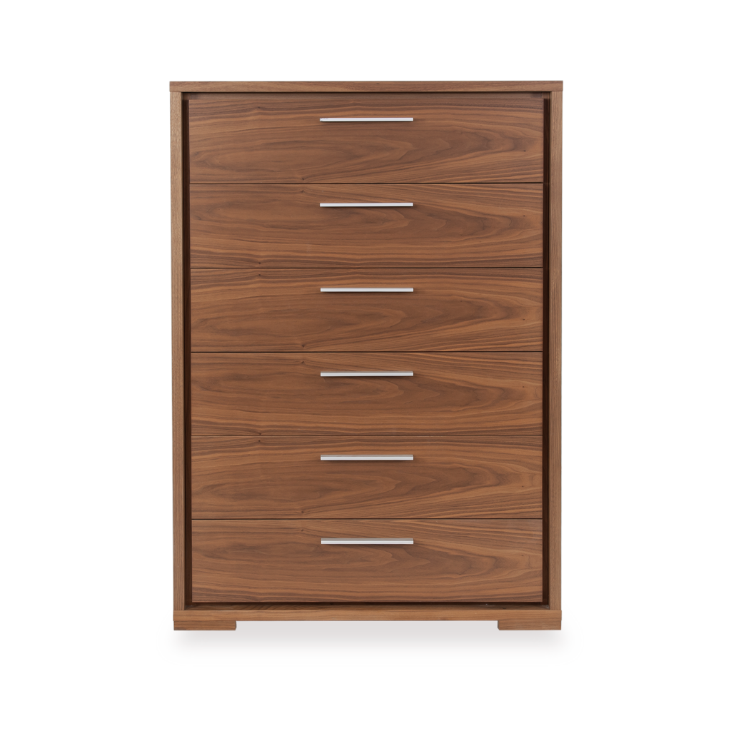 The Sonoma High Chest, available in walnut with nickel handles, features clean lines and six drawers that provide ample storage. Sonoma's design is simple and elegant and is at home in contemporary, transitional, and traditional design environments. Pair it with the Sonoma king or queen bed, nightstand, and double dresser for a complete bedroom setup.
